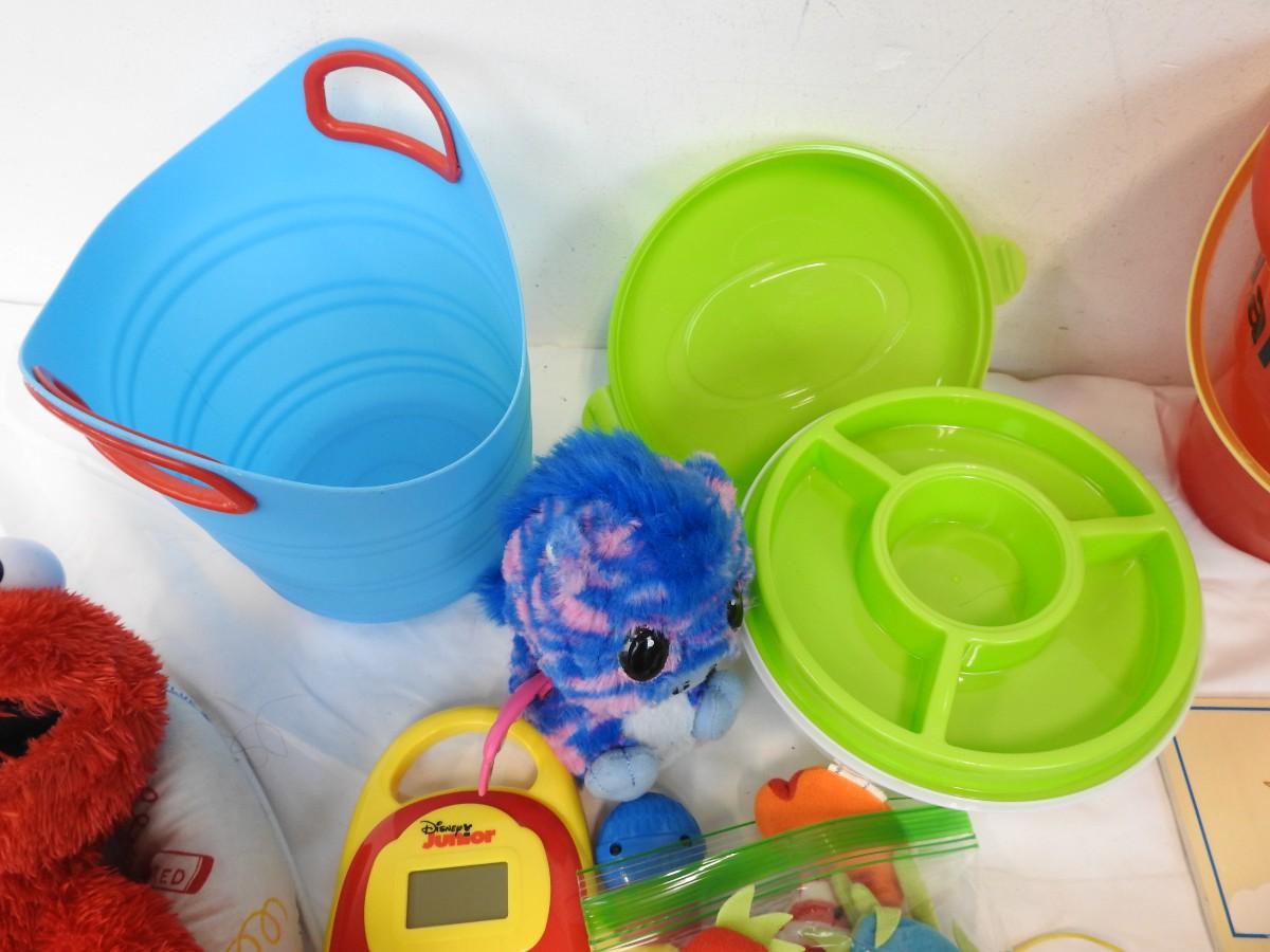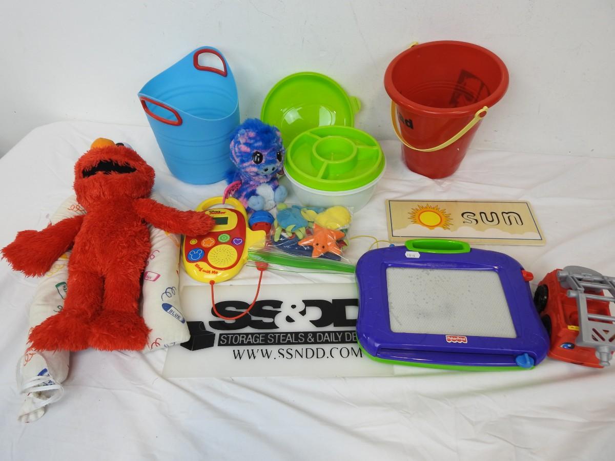 11 pc Kids Lot, Tickle Me Elmo, Buckets, Fisher Price, Sea Animal Finger Puppets