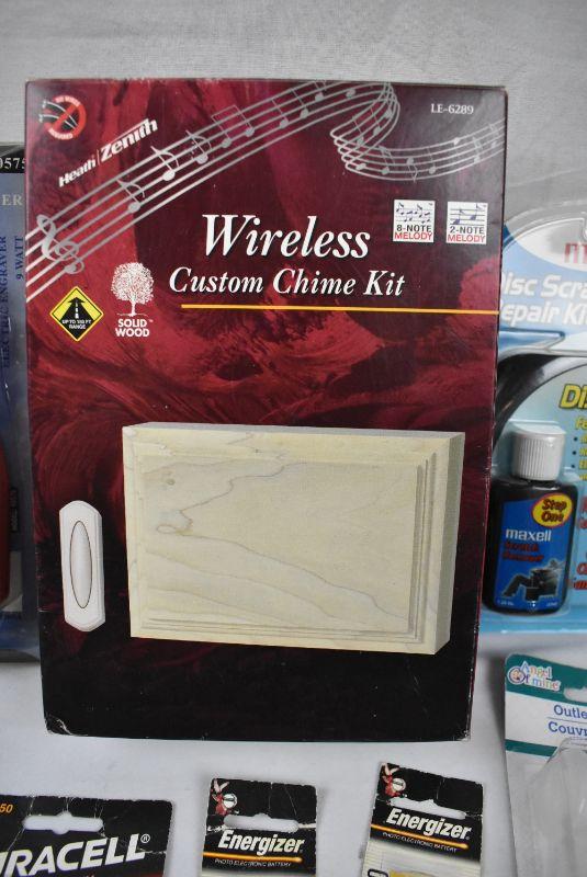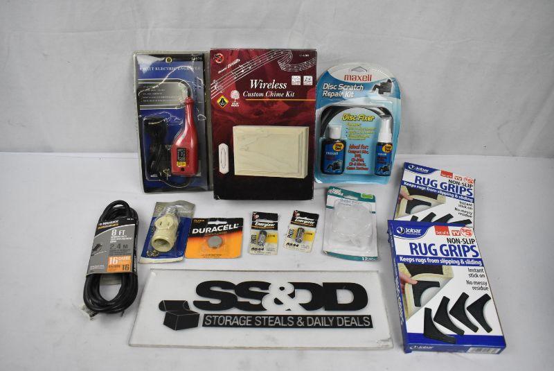 11 pc Lot Electrical/Home Improvement: Doorbell, Rug Grips, Batteries, etc - New