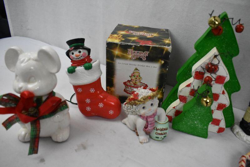 11 pc Misc Christmas: Caroller, Mouse Figurine, Christmas Cookies Angel Figurine