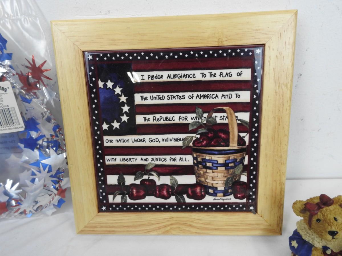 11 pc Patriotic 4th of July Decor, Flag Bears, Garland, Wind Twister