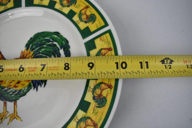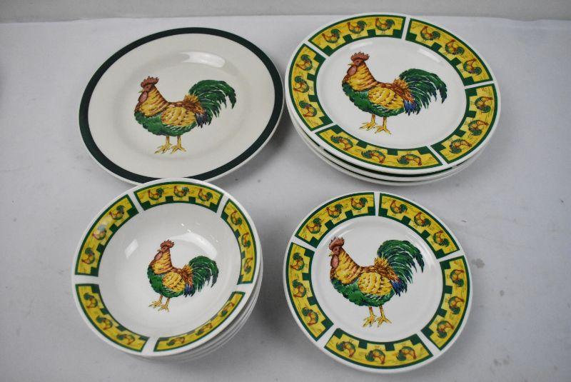 11 Piece Rooster Dishes Set: 1 Serving Plate, 3 Regular Plates, 4 Bowls, and 3 Small Plates