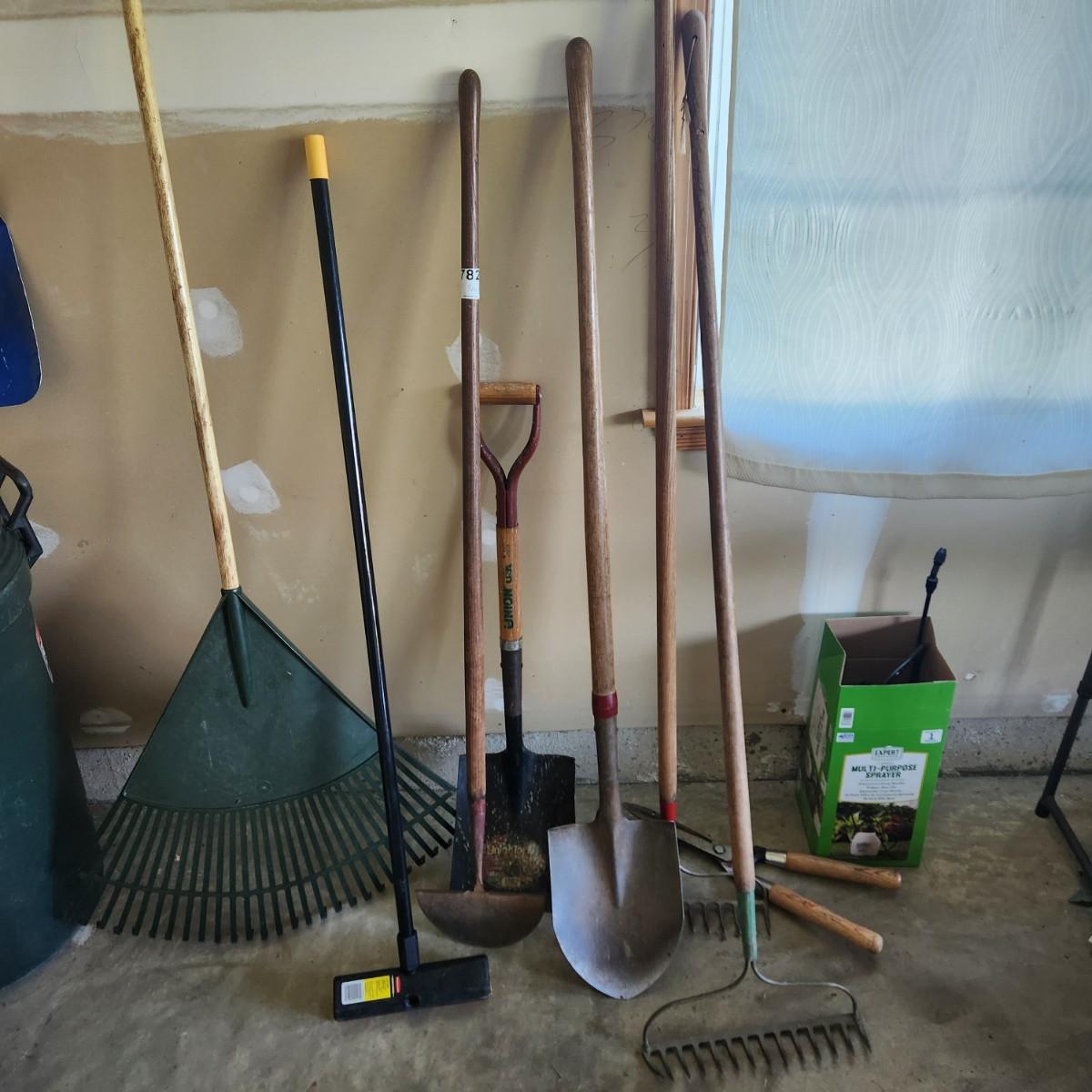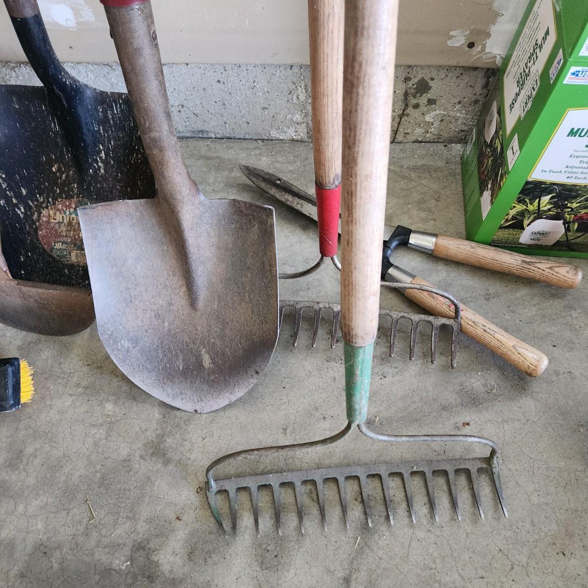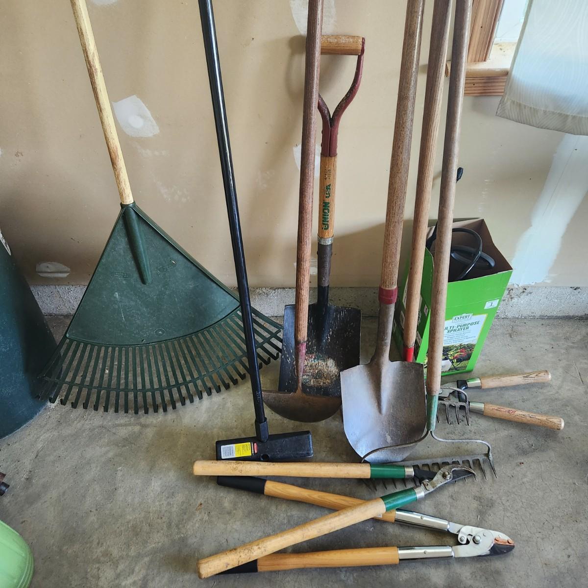 11 PCs of Yard & Garden Tools Shovel Rakes Sprayer brush broom, trimmers