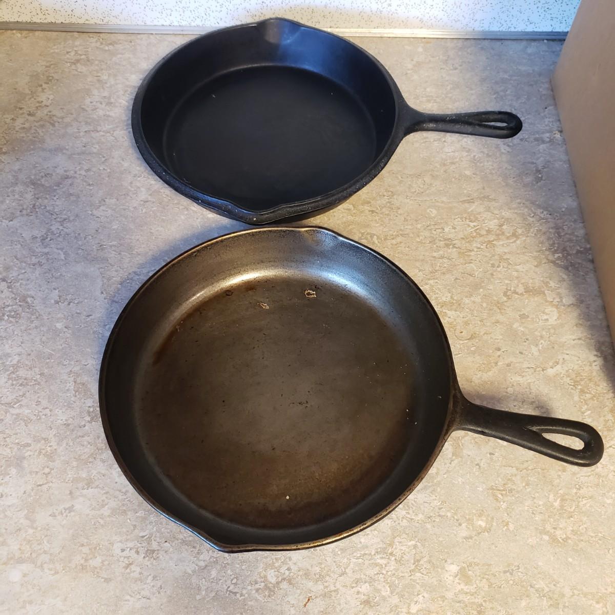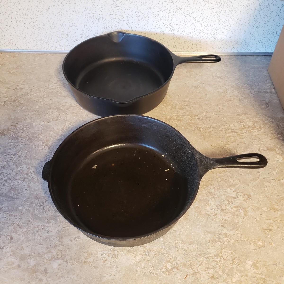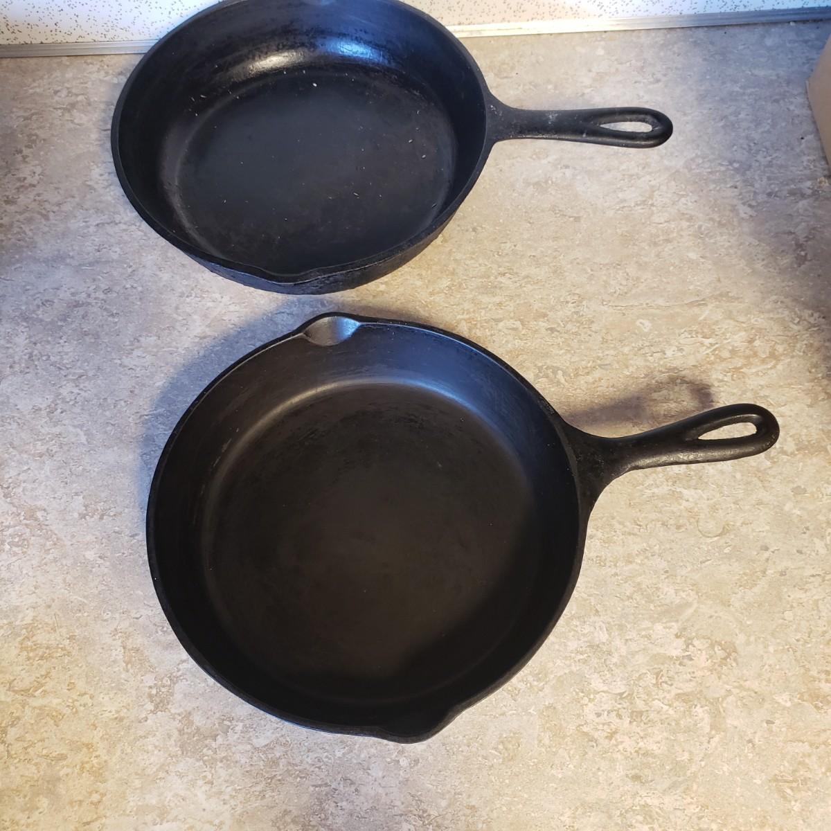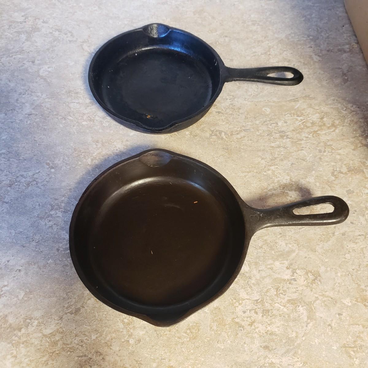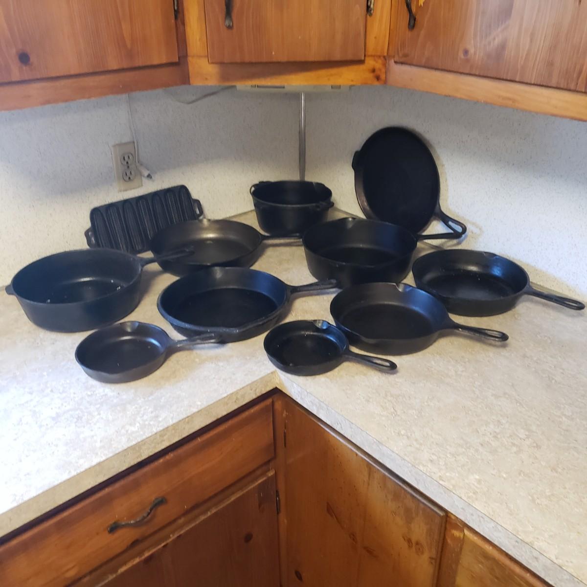 This lot features 11 cast iron pans. All pans are marked in some way, see pictures for details. Pans are ready to use!!