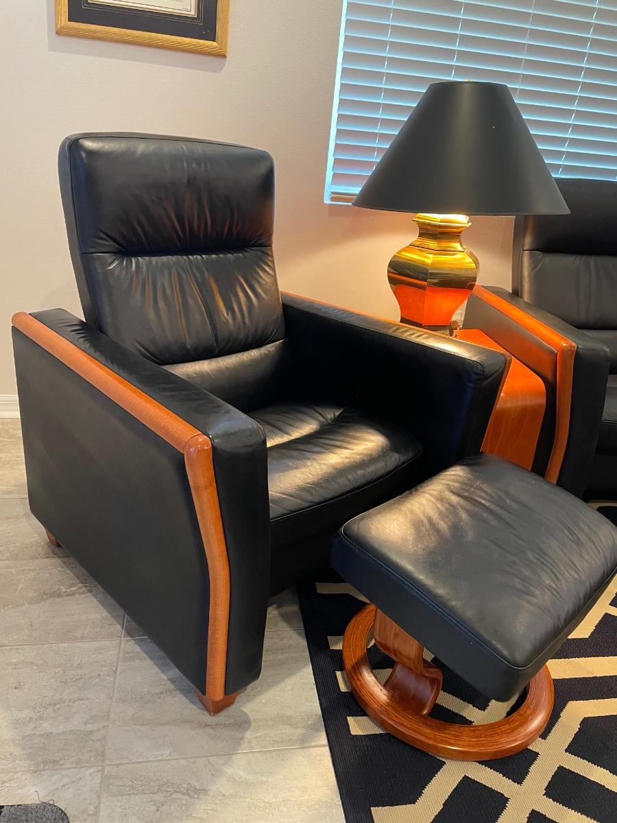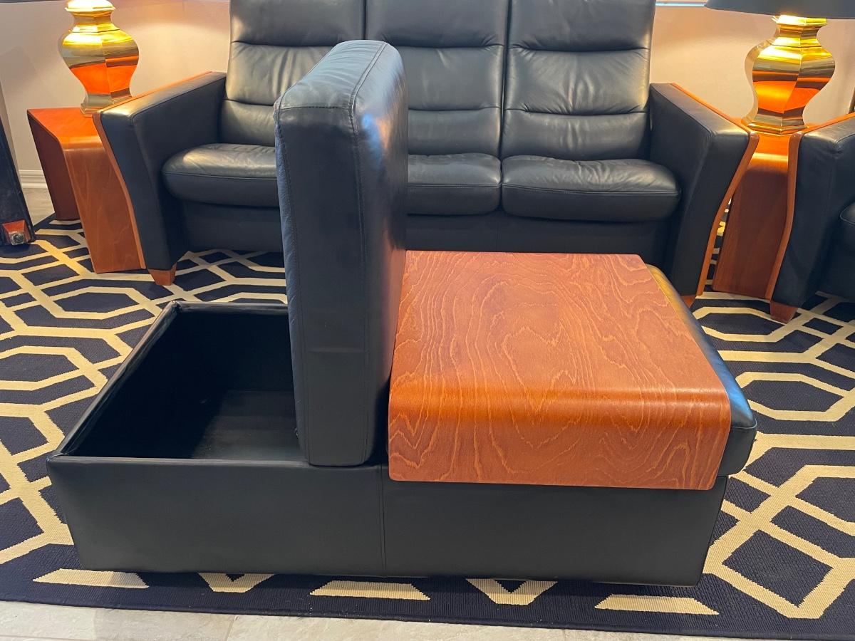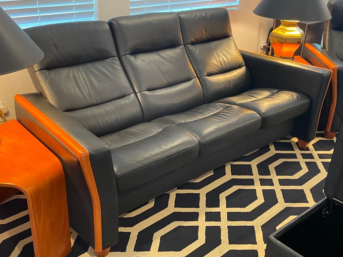 Absolutely beautiful 11 piece Ekornes black leather Stressless living room set.