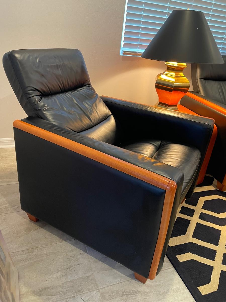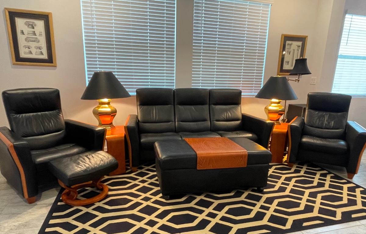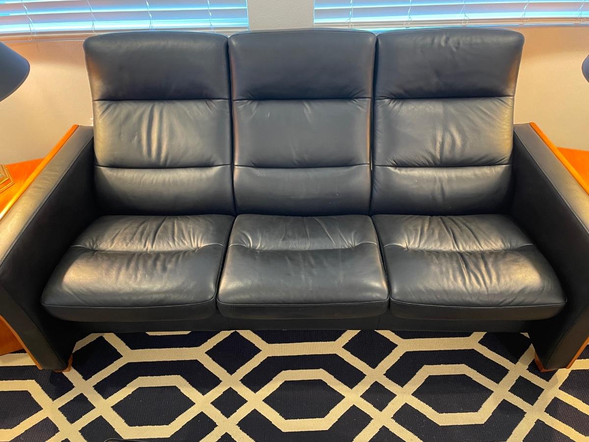 Absolutely beautiful 11 piece Ekornes black leather Stressless living room set.