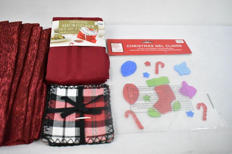 11 Piece Holiday Decor: Window Clings, 4 Coaster, 6 Napkins - New