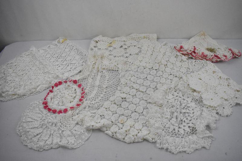 11 Piece Vintage Doilies & Runners - Some Show Wear/Spots