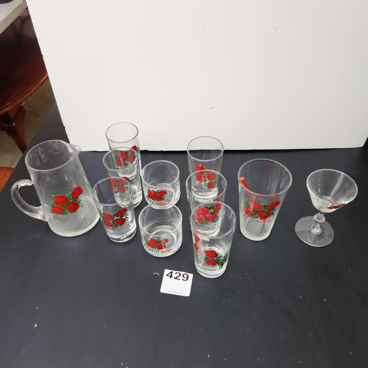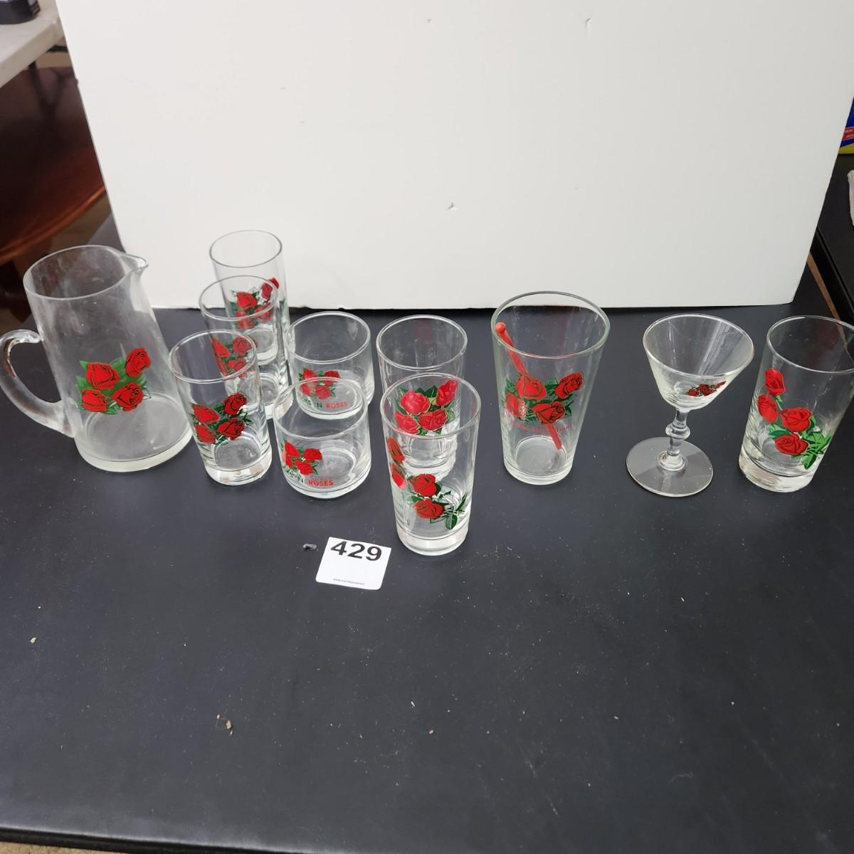 11 pieces lot of Four Roses Whiskey Promo Glasses Pitcher