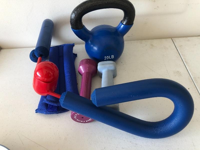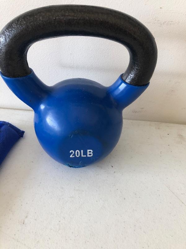 Includes 20 pound kettle ball 23 pound weights ankle weights and by master all in good used condition. This is an ONSITE Auction all items will need to be picked up on location. Please see auction description for pick up procedures.