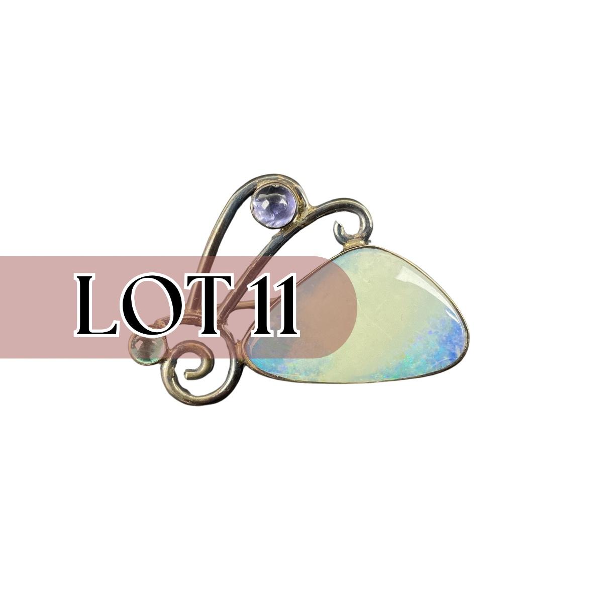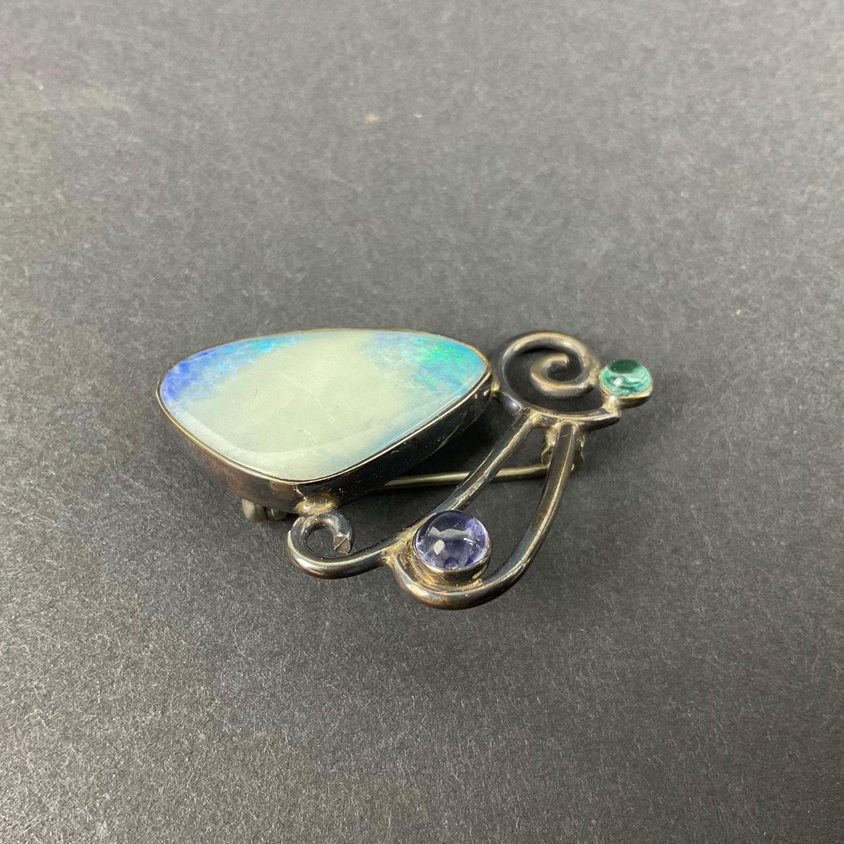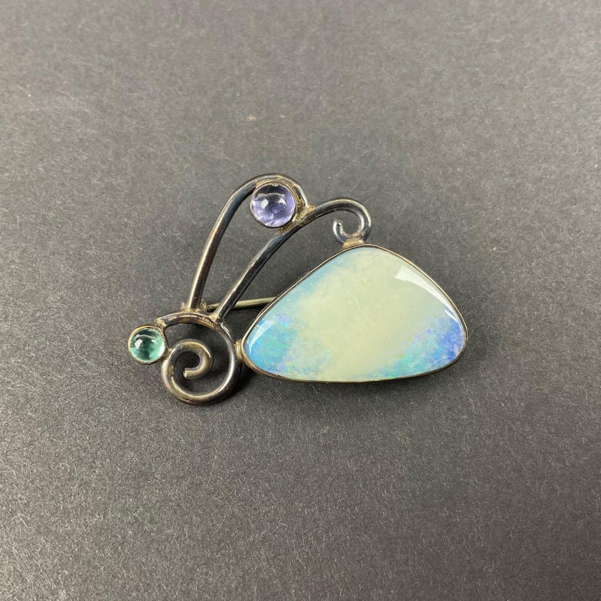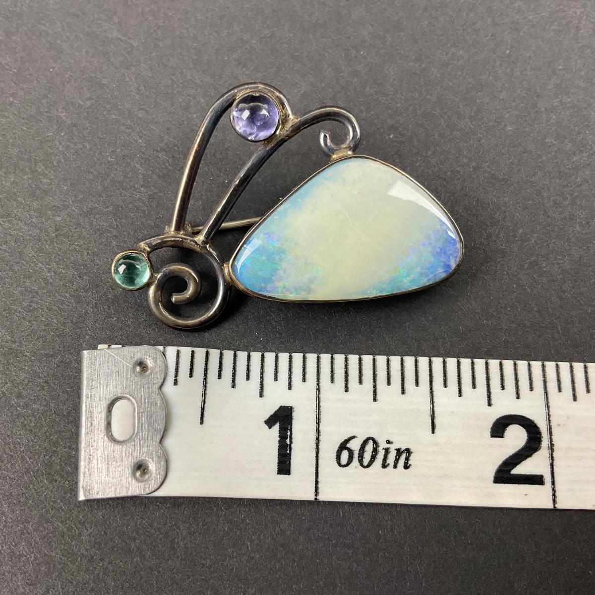 -11- STERLING | GFMW Marked Opal & Stone Brooch | Marked