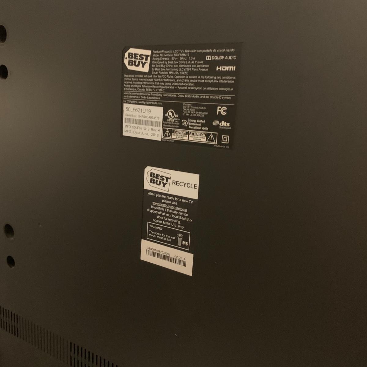 50inch tv. No remote. Turns on and works great.