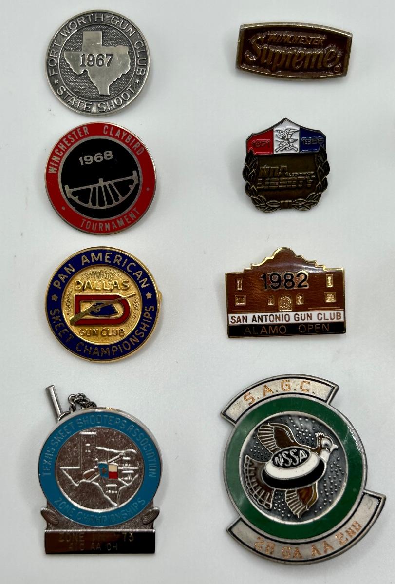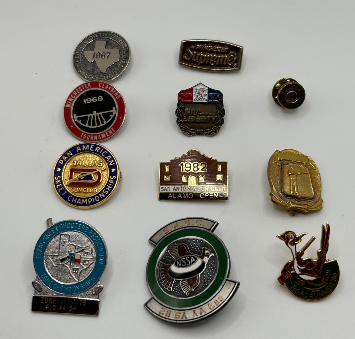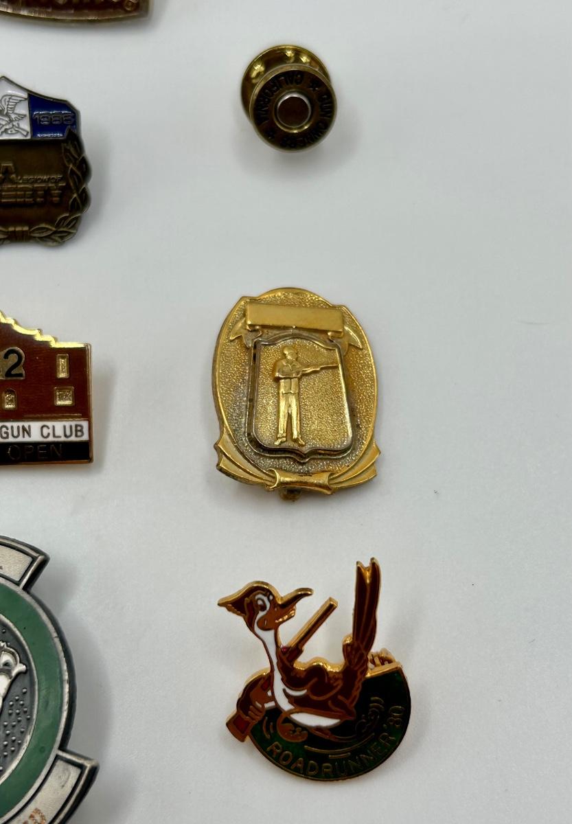 Lot includes 11 assorted pins for various marksmanship accomplishments and gun clubs.