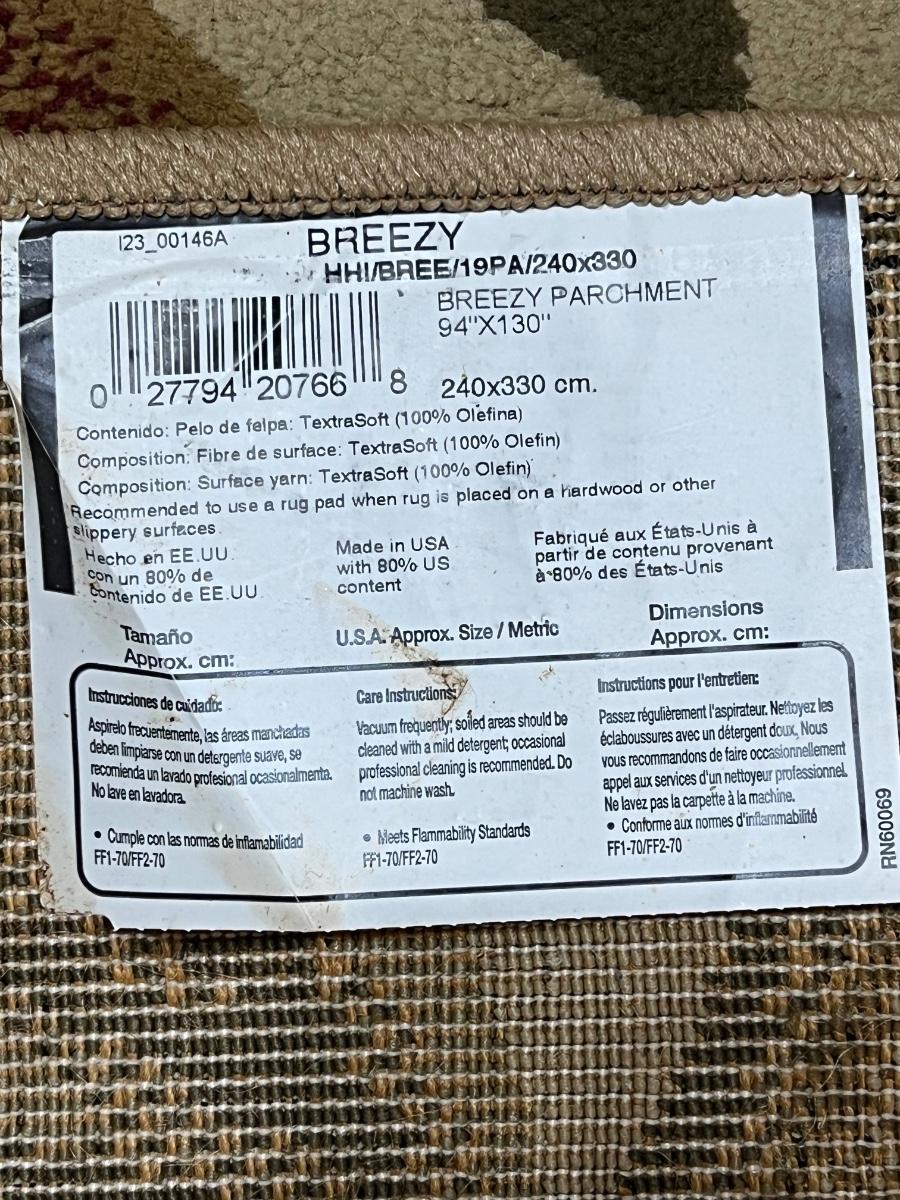 Breezy Parchment ~ 11’ x 8” Area Rug