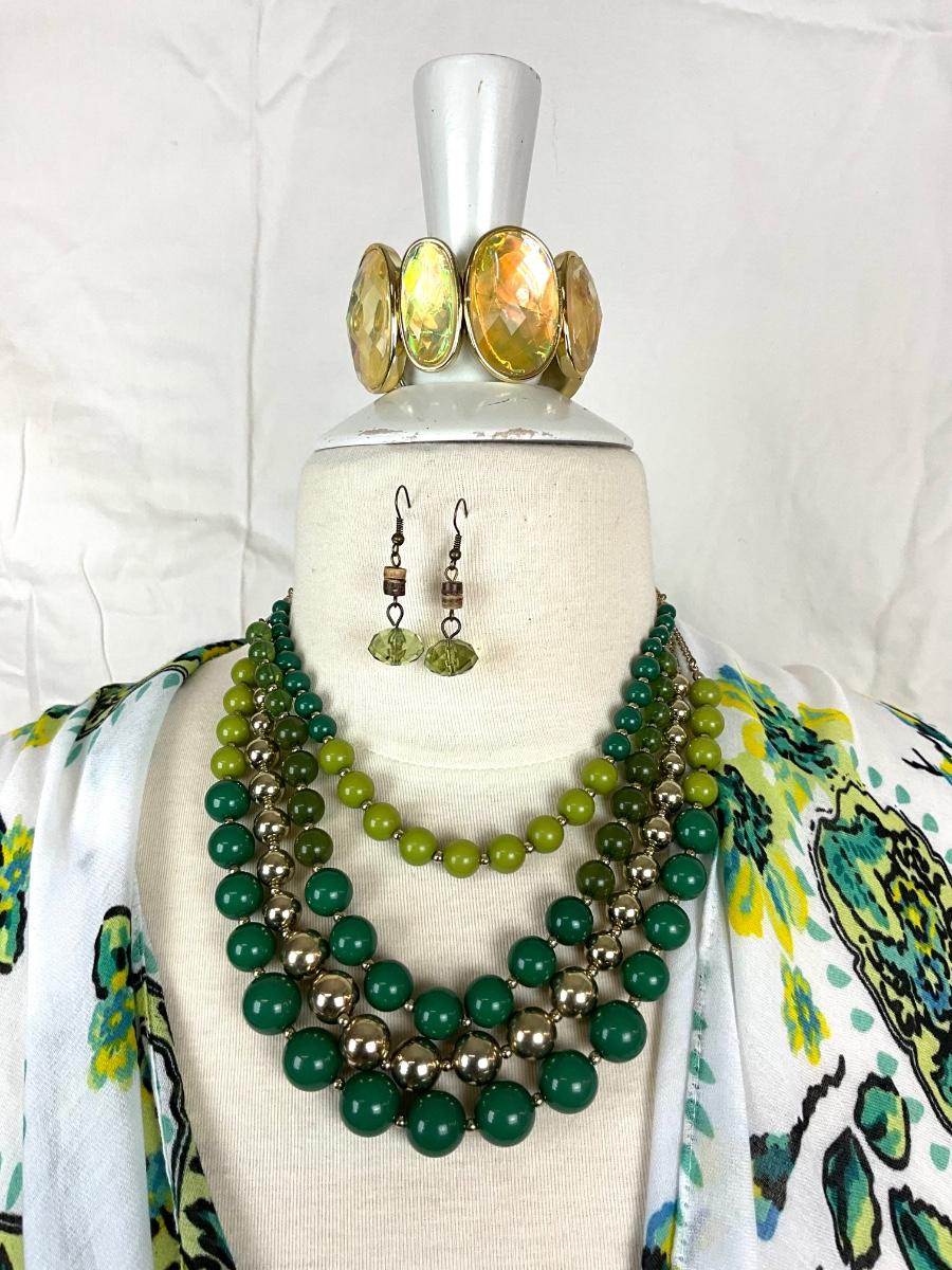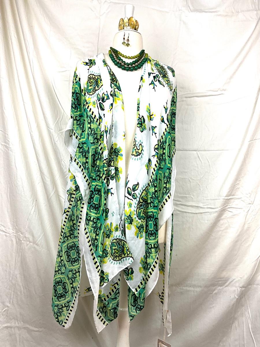 110 Green Paisley Wrap / Shawl with Necklace, Earrings and Bracelet