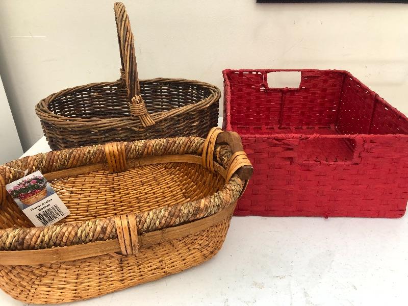 Bundle of three baskets various styles and sizes good condition. This is an ONSITE Auction all items will need to be picked up on location. Please see auction description for pick up procedures.
