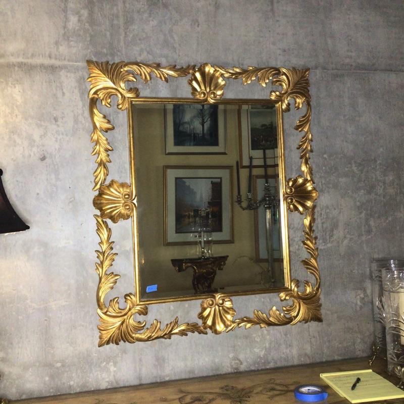 With the stunning elegance of gilded gold & beveled glass, this mirror measures 41”W x 48”H