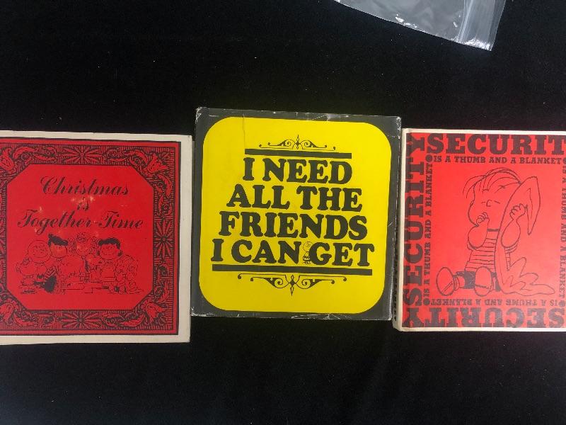 Bundle includes security is a thumb and a blanket, Christmas is together time, and I need all the friends I can get. Books are in used vintage condition