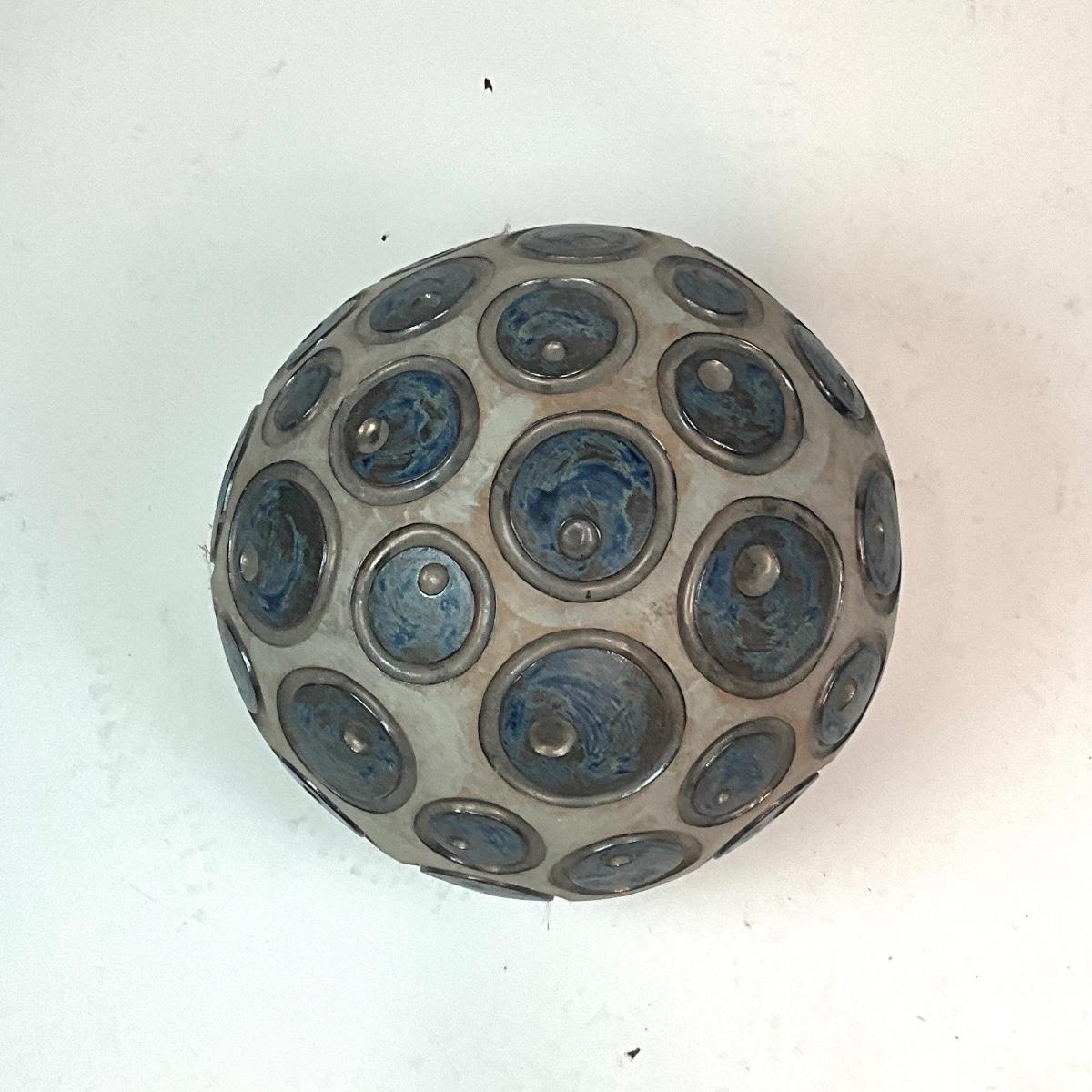 hand-formed clay globe sculpture. condition to age is very good.