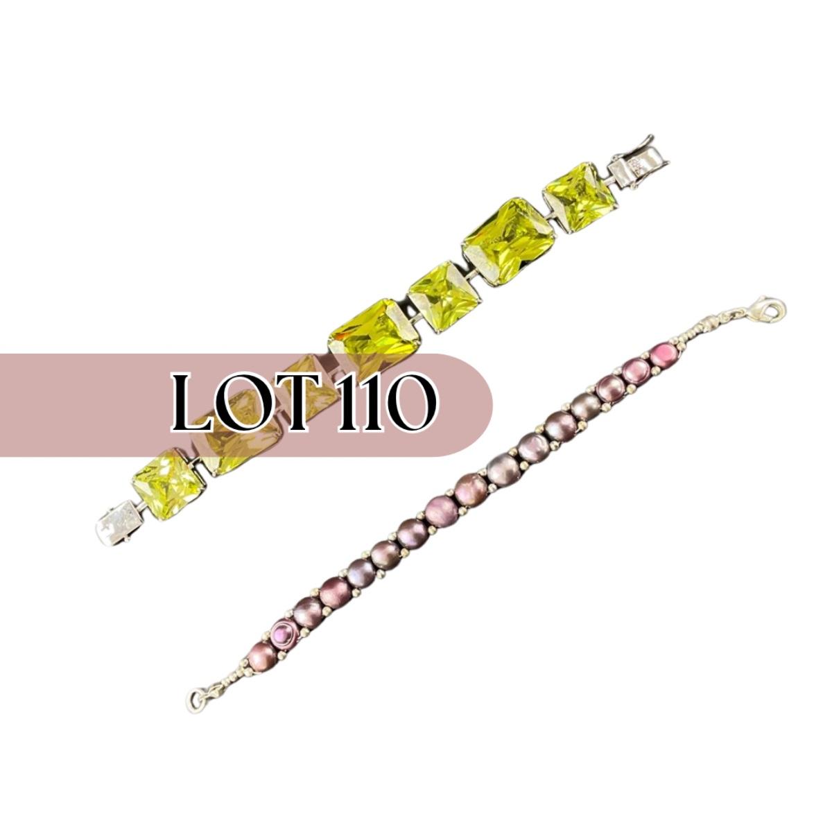 Two unique vintage bracelets. This piece does have some scuffs, scratches, marks, or slight damage, but otherwise appears to be in great shape. Please see photos for details and condition. Any condition statement is given as a courtesy to a client, is an opinion, and should not be treated as a statement of fact. Reference to condition written, oral or within a condition report shall not be regarded as a full account of condition and may not include all defects, alterations, or restorations. Absence of a condition report does not imply a lot is flawless or lacking imperfections or damage. Katherine’s Auction & Appraisal Service shall have no responsibility for any error or omission. Returns shall not be accepted on the basis of condition. ::: Shipping is available on this lot. If you require shipping you must let us know at the close of the auction. We will coordinate with you after the item has been won. Shipping fees will include insurance up to or exceeding the value of all items being mailed. If you have any questions regarding this lot please contact the auctioneer either via this website, by direct email or by phone. PICK UP TIMES and other important information can be found in the TERMS and DESCRIPTION of the auction. Please take a look for pertinent information. Thanks!
