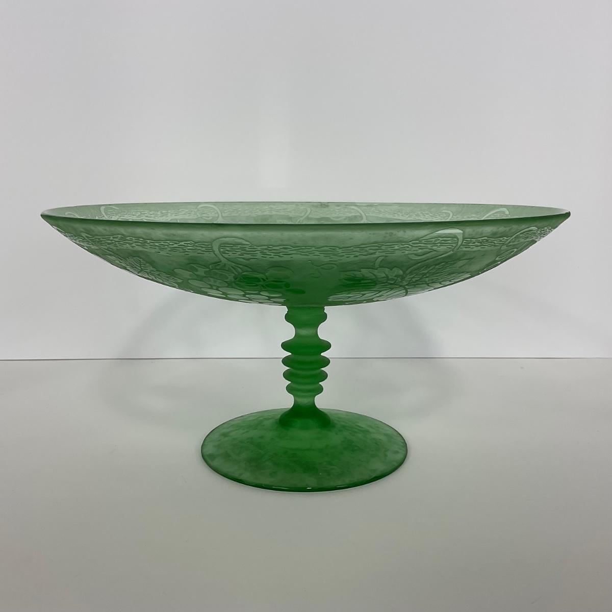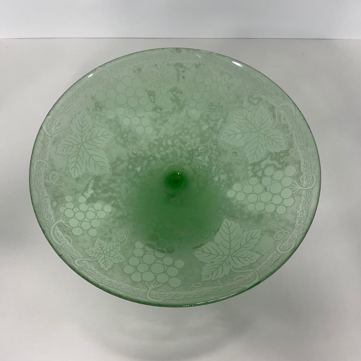 -110- GLASSWARE | Green Etched Leaf & Grapes Compote | Twisted Stem