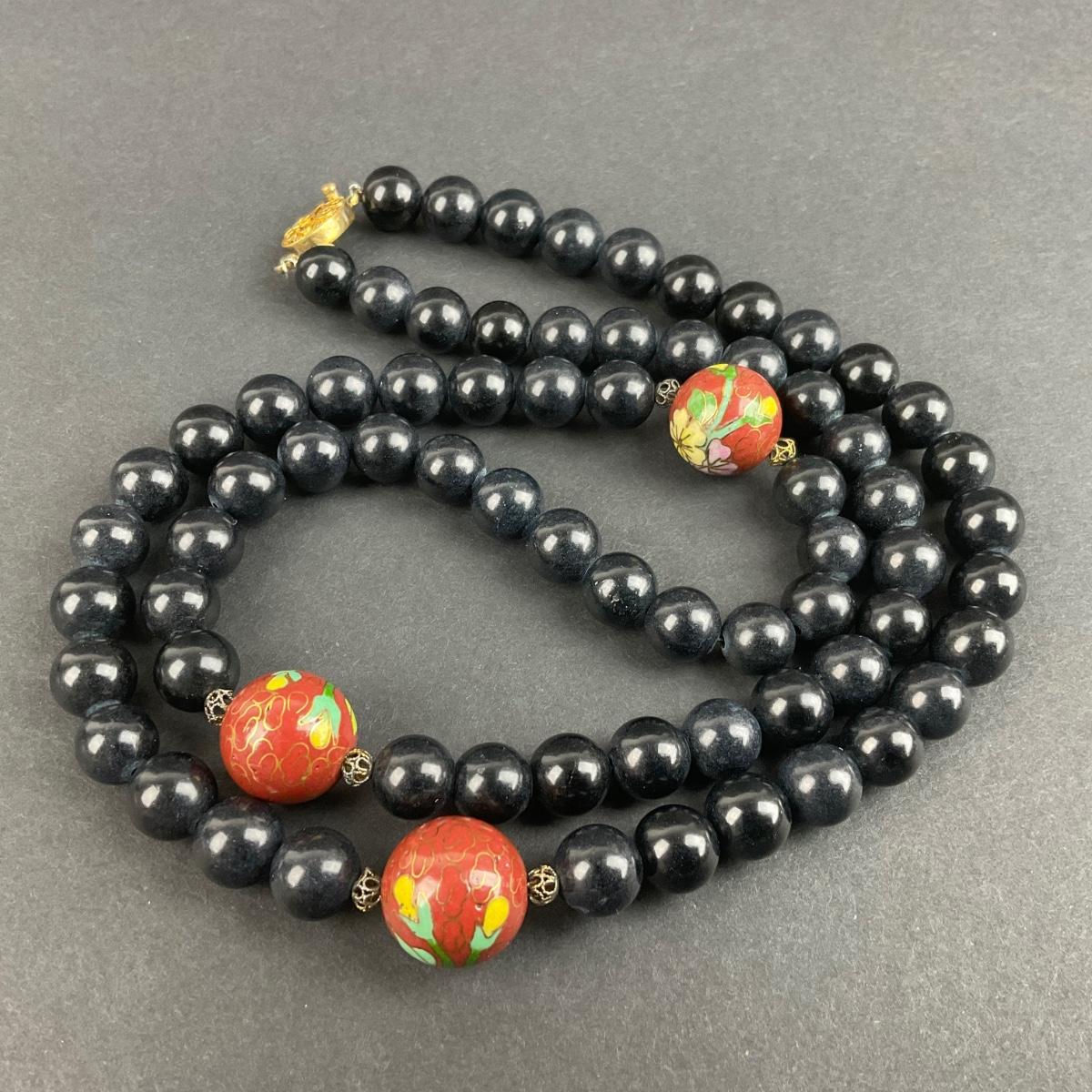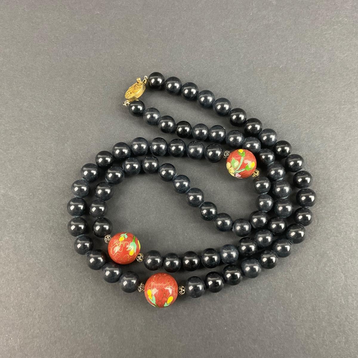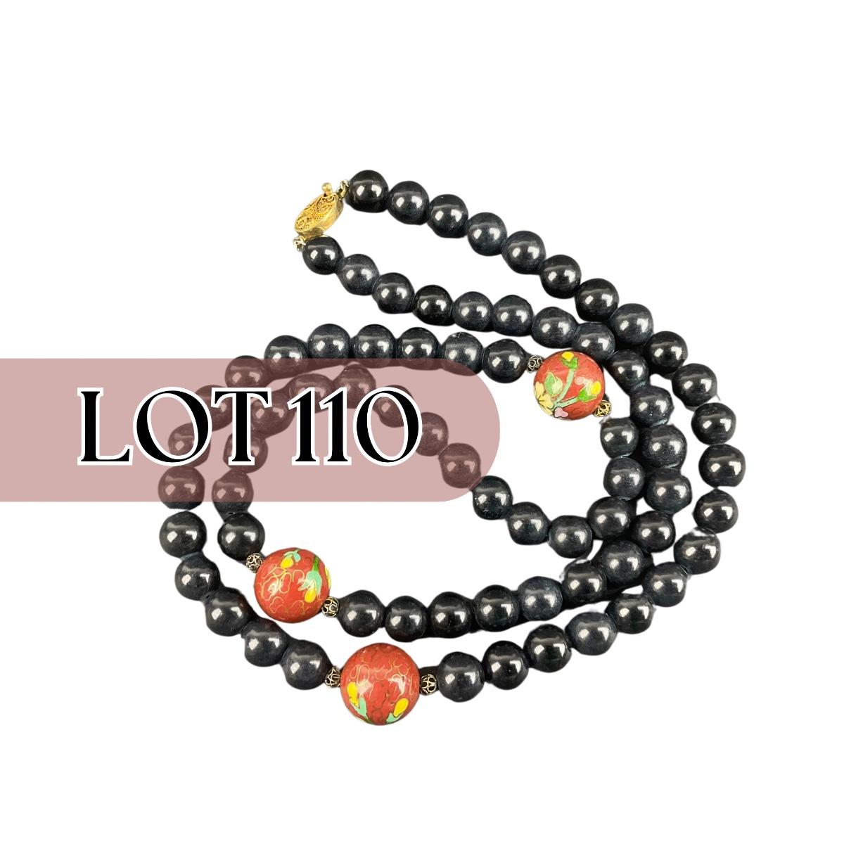 -110- JEWELRY | Cloisonné & Onyx Stone Necklace | Marked