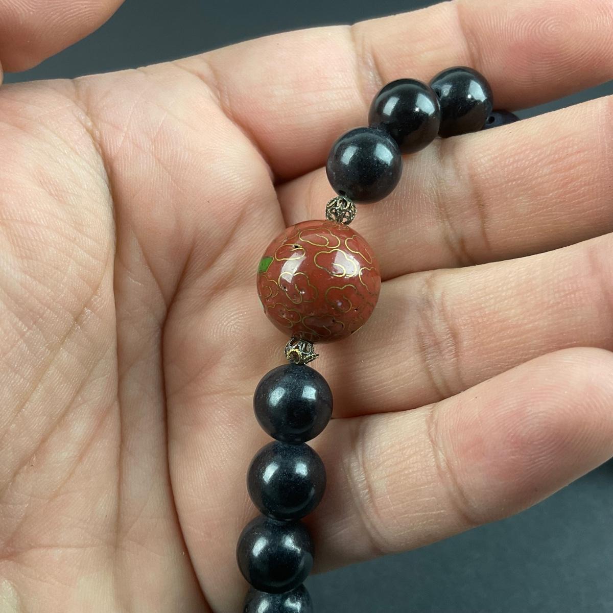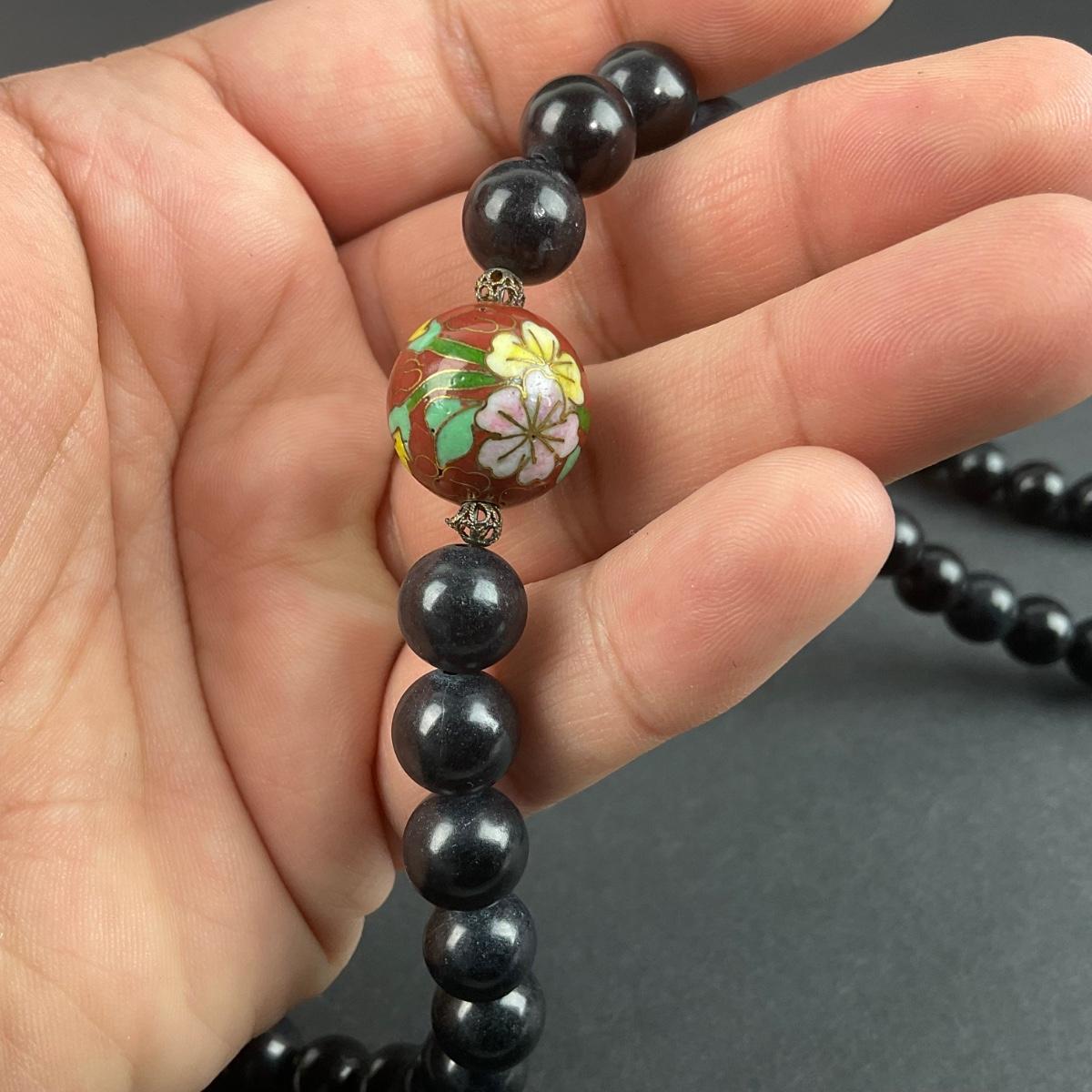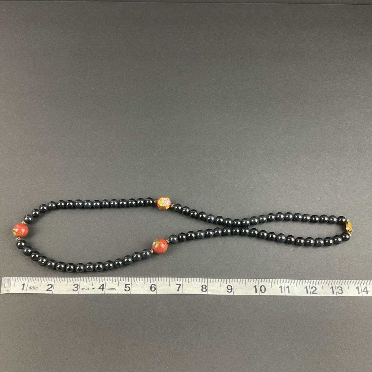 -110- JEWELRY | Cloisonné & Onyx Stone Necklace | Marked