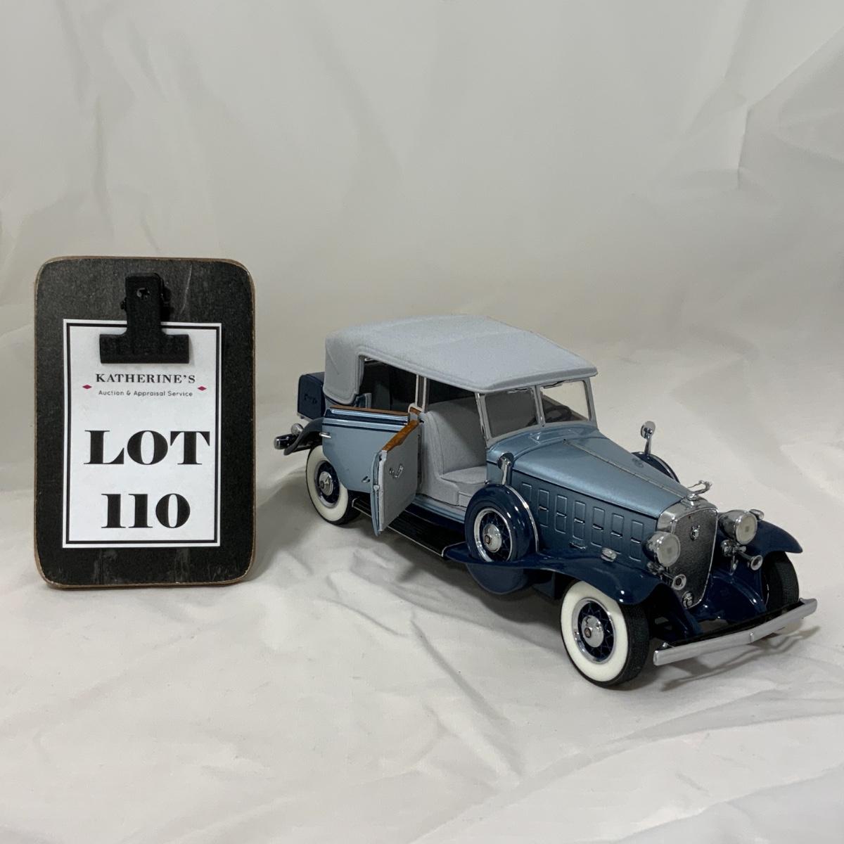 From the Estate of Peter Radovanovich: Franklin Mint Die-Cast 1932 Cadillac Phaeton. Limited Edition Vehicle, 586/1500. Car appears to be complete and looks excellent! Car does not come with original box. Please see photos for details and condition. ::: Shipping is available on this lot. If you require shipping you must let us know at the close of the auction. We will coordinate with you after the item has been won. Shipping fees will include insurance up to or exceeding the value of all items being mailed. If you have any questions regarding this lot please contact the auctioneer either via this website, by direct email or by phone. PICK UP TIMES and other important information can be found in the TERMS and DESCRIPTION of the auction. Please take a look for pertinent information. Thanks!