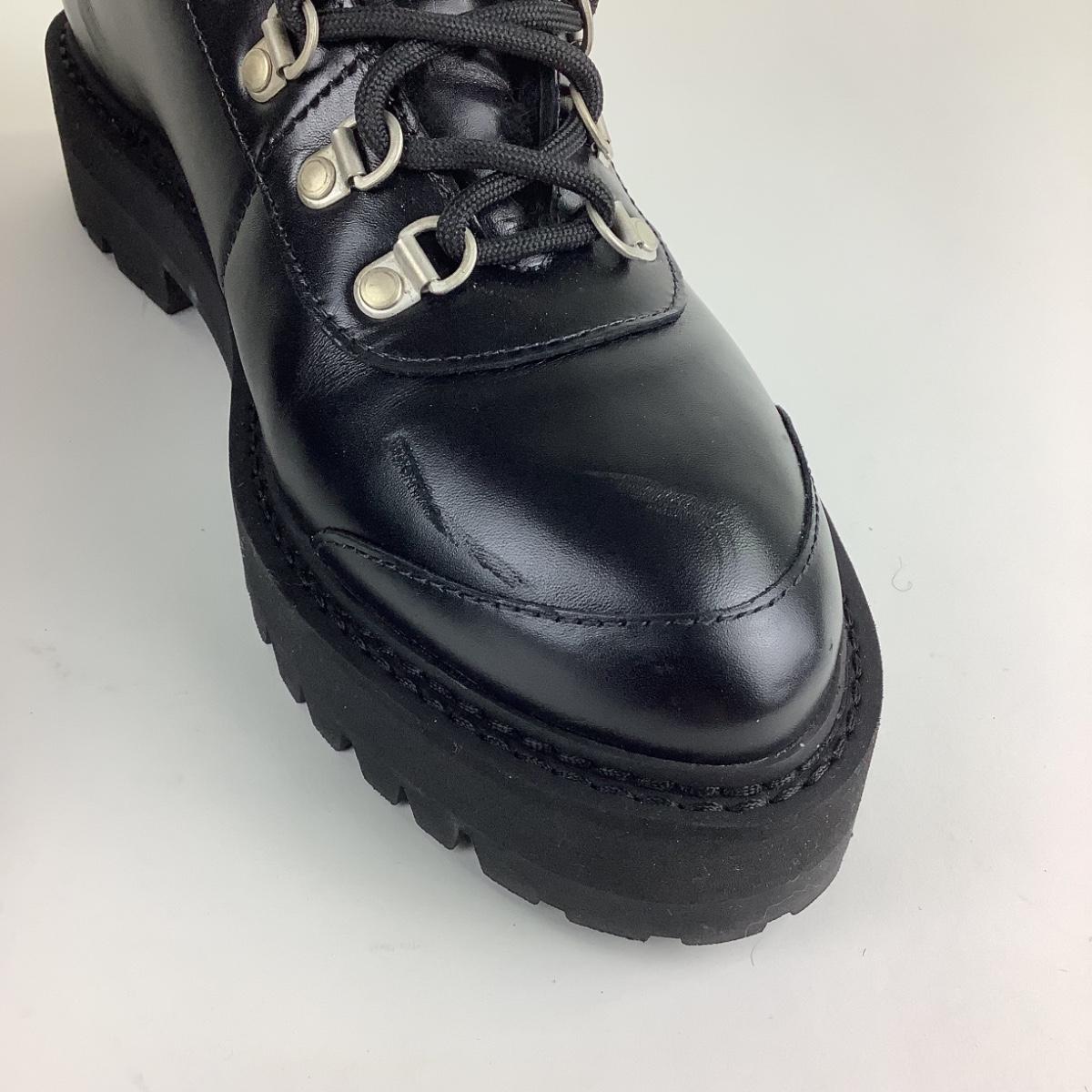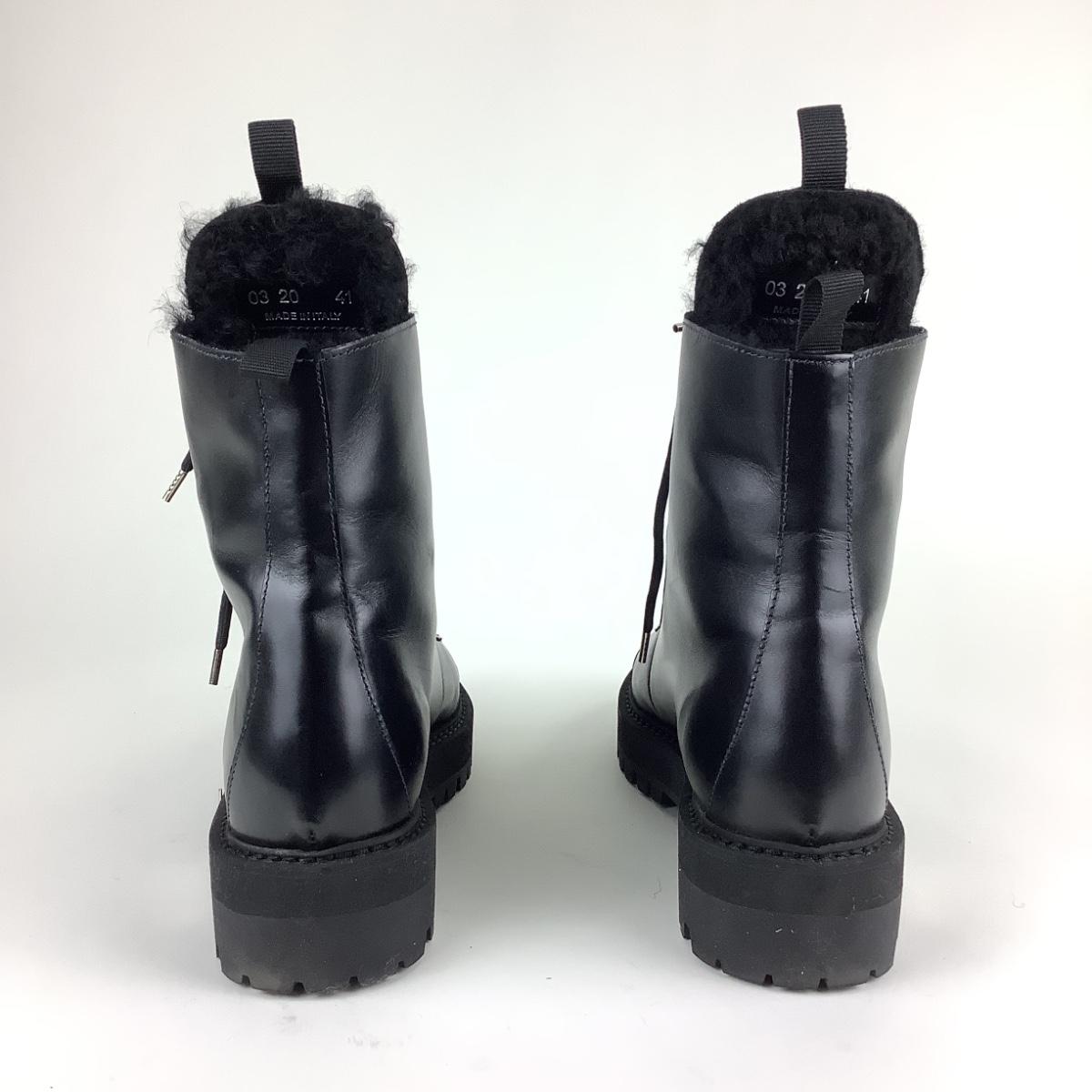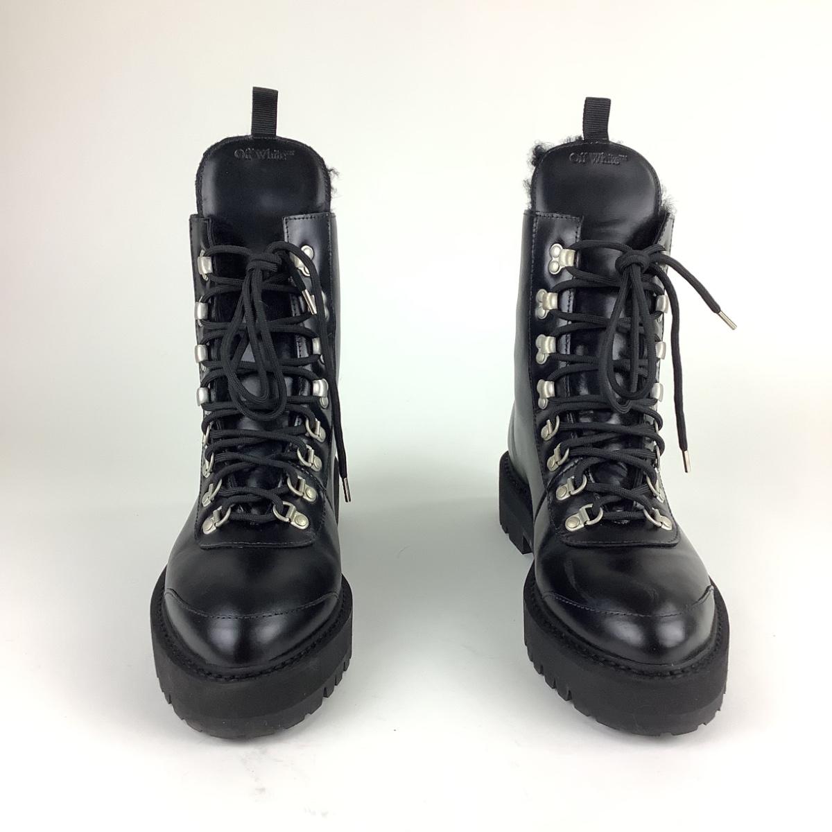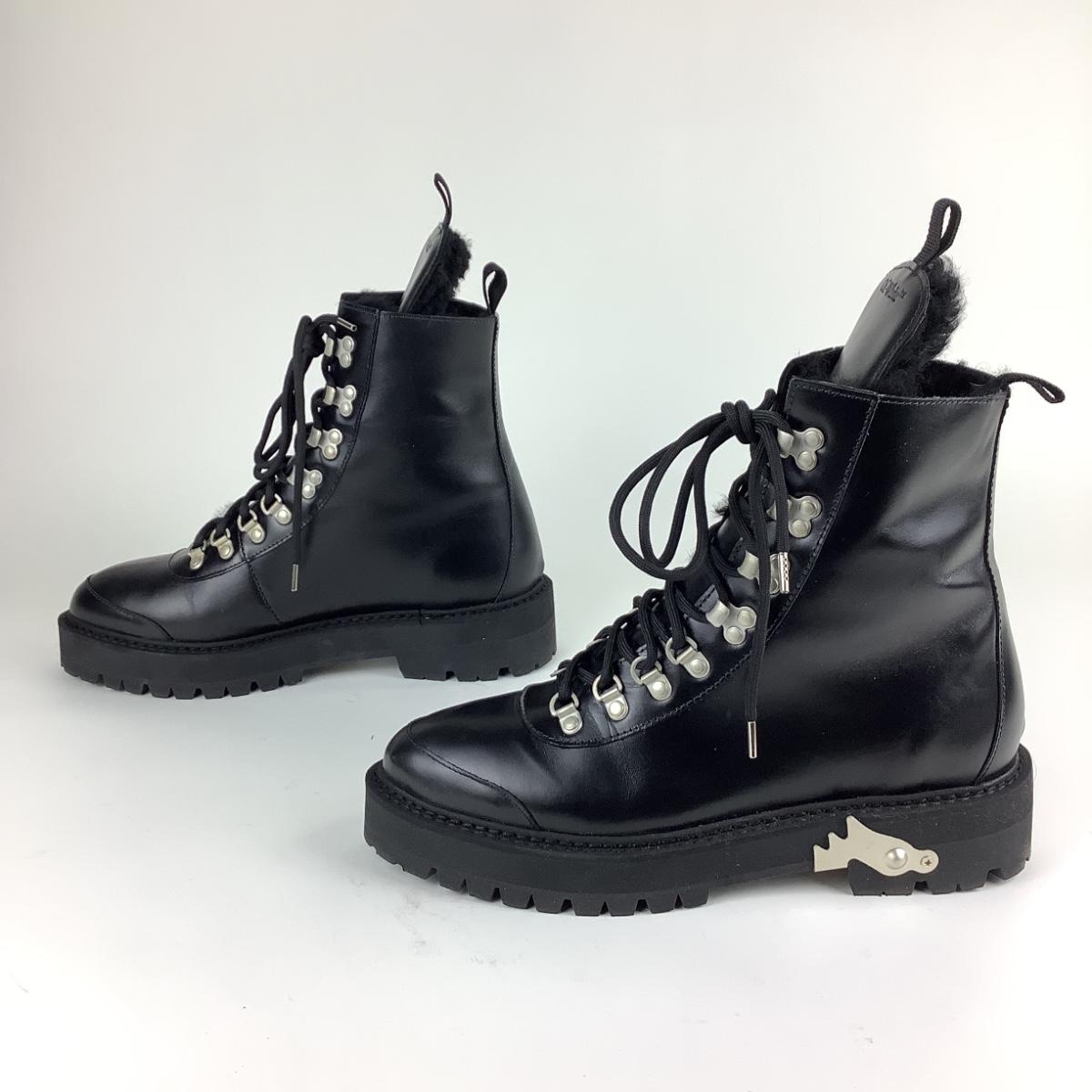 Off-White black leather ankle boots designed in Milan, Italy have padded insoles, thick lug sole,