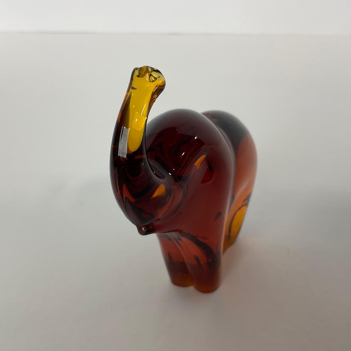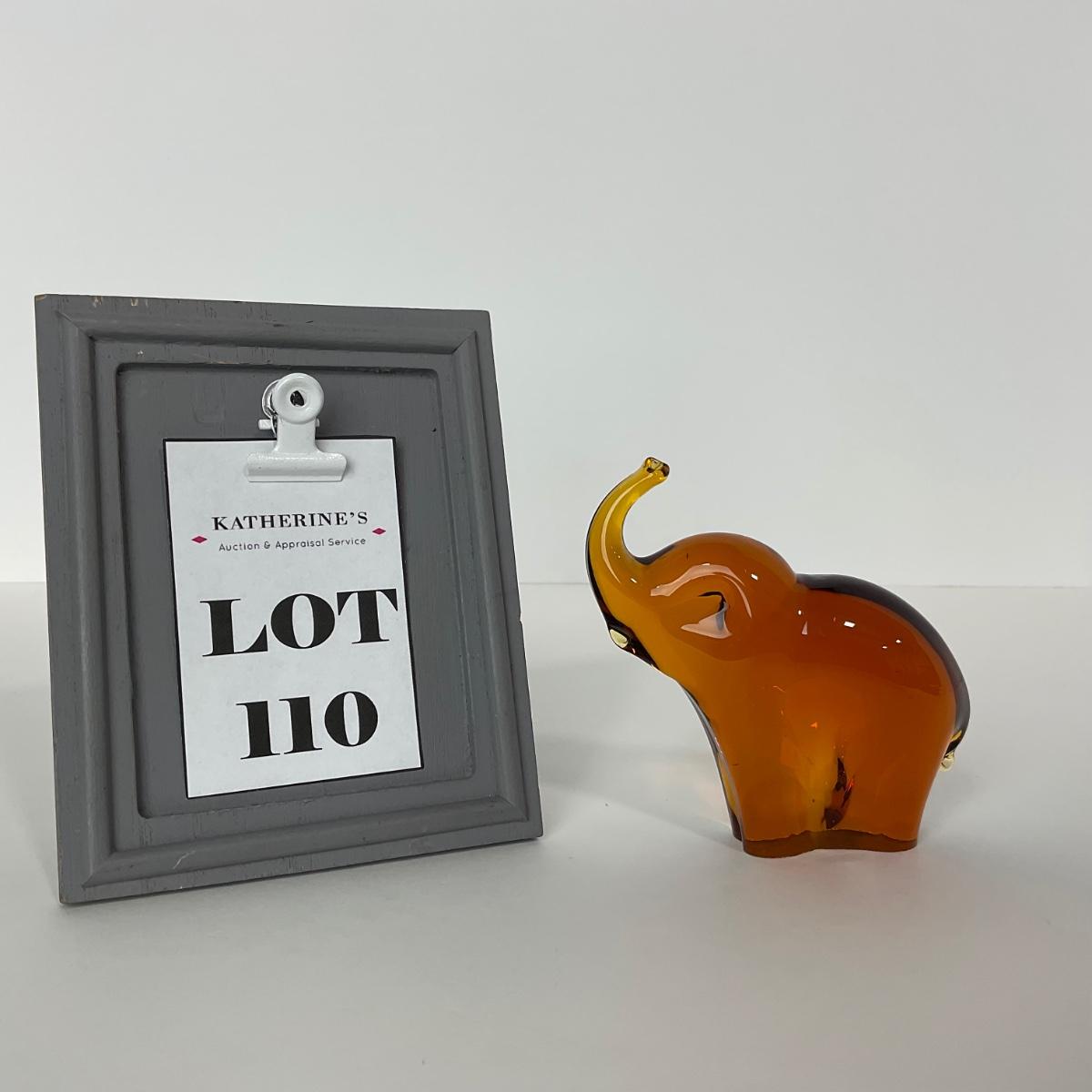 One Pilgrim art glass amber colored elephant. This piece does have a few minor chip at the bottom base but otherwise seems to be in good condition. 3 1/2 inches wide by 3 1/2 inches tall. Please see photos for details and condition. Any condition statement is given as a courtesy to a client, is an opinion, and should not be treated as a statement of fact. Reference to condition written, oral or within a condition report shall not be regarded as a full account of condition and may not include all defects, alterations, or restorations. Absence of a condition report does not imply a lot is flawless or lacking imperfections or damage. Katherine’s Auction & Appraisal Service shall have no responsibility for any error or omission. Returns shall not be accepted on the basis of condition. ::: Shipping is available on this lot. If you require shipping you must let us know at the close of the auction. We will coordinate with you after the item has been won. Shipping fees will include insurance up to or exceeding the value of all items being mailed. If you have any questions regarding this lot please contact the auctioneer either via this website, by direct email or by phone. PICK UP TIMES and other important information can be found in the TERMS and DESCRIPTION of the auction. Please take a look for pertinent information. Thanks!