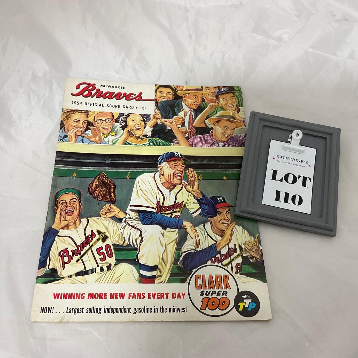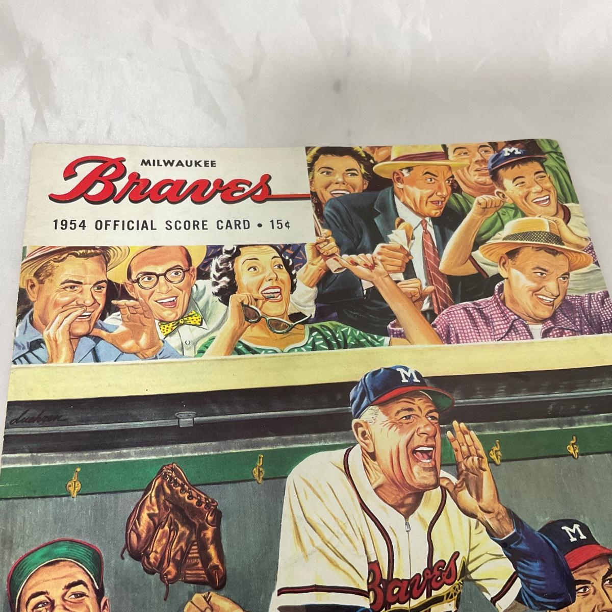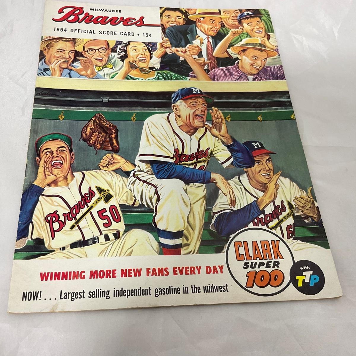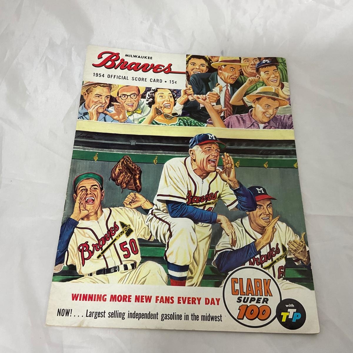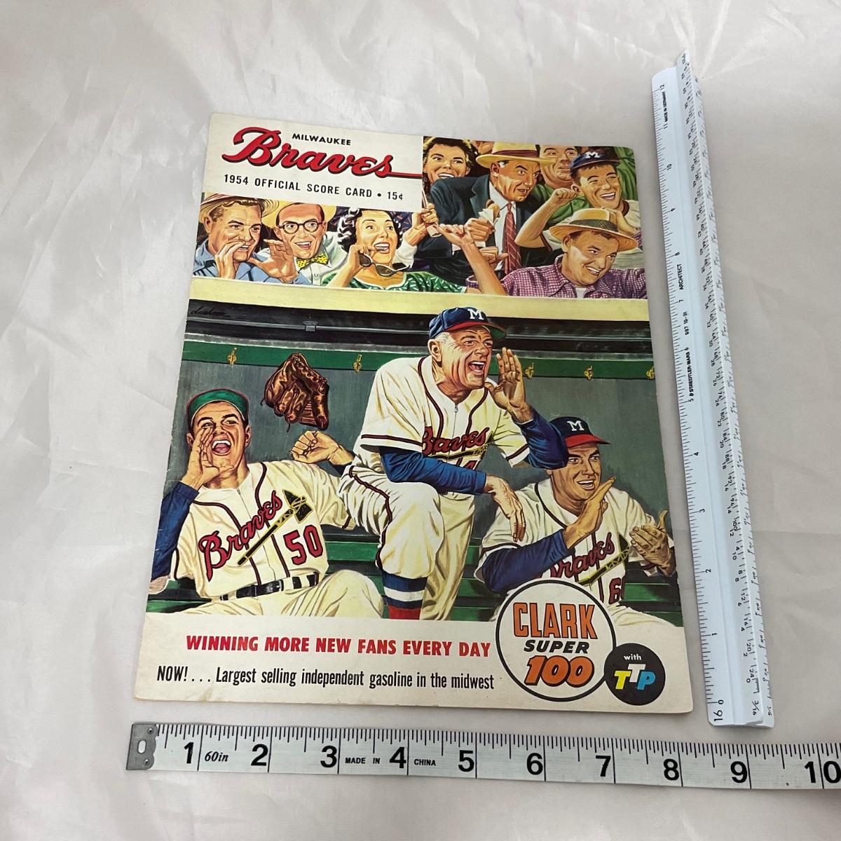One vintage 1954 Milwaukee Braves Program. Please see photos for details and condition. ::: Shipping is available on this lot. If you require shipping you must let us know at the close of the auction. We will coordinate with you after the item has been won. Shipping fees will include insurance up to or exceeding the value of all items being mailed. If you have any questions regarding this lot please contact the auctioneer either via this website, by direct email or by phone. PICK UP TIMES and other important information can be found in the TERMS and DESCRIPTION of the auction. Please take a look for pertinent information. Thanks!