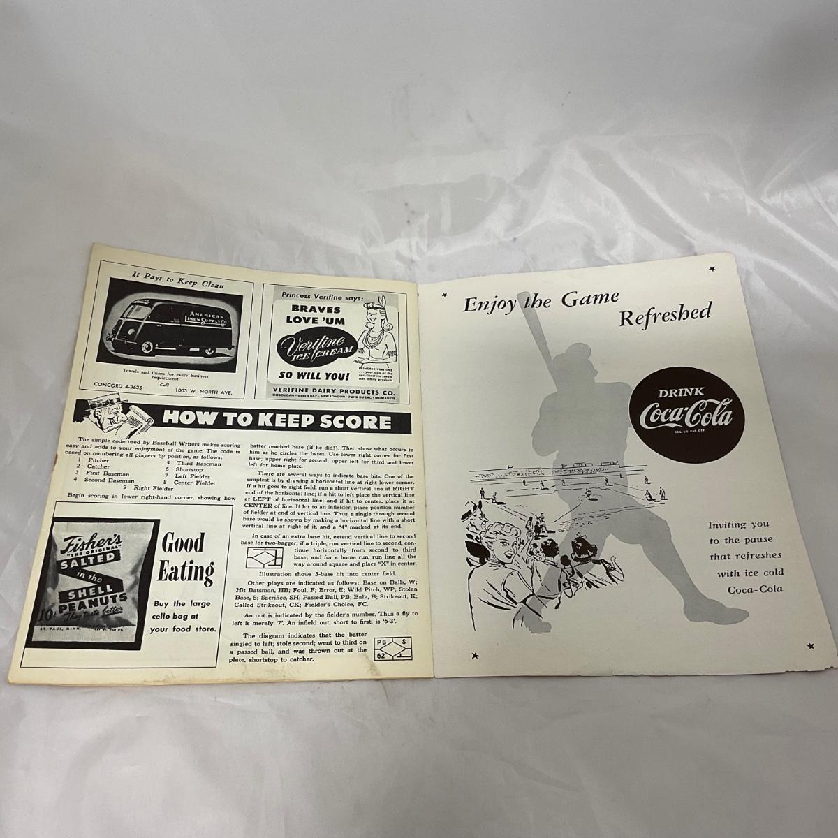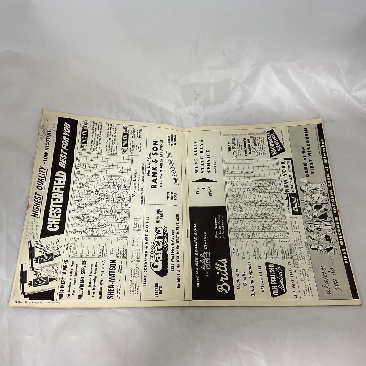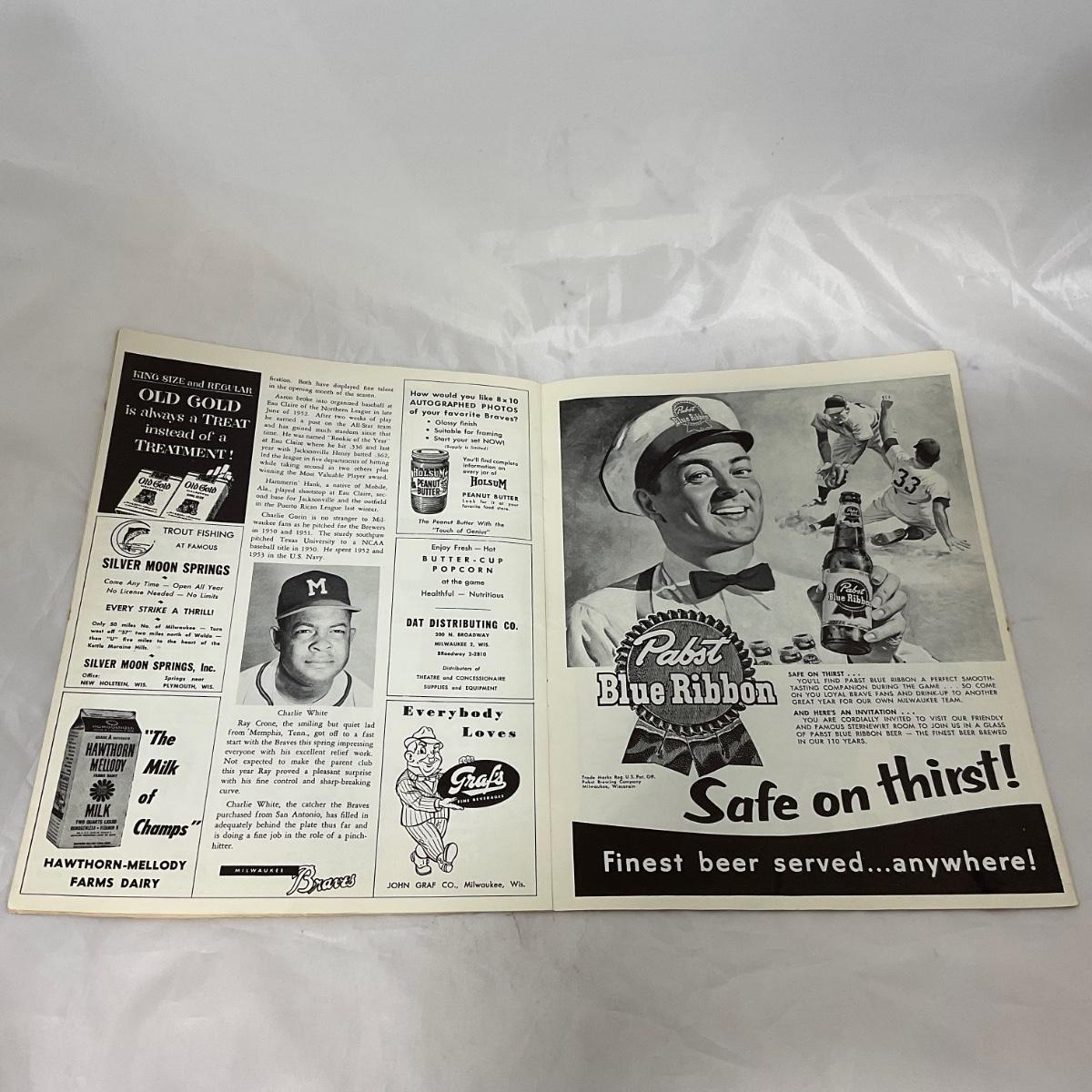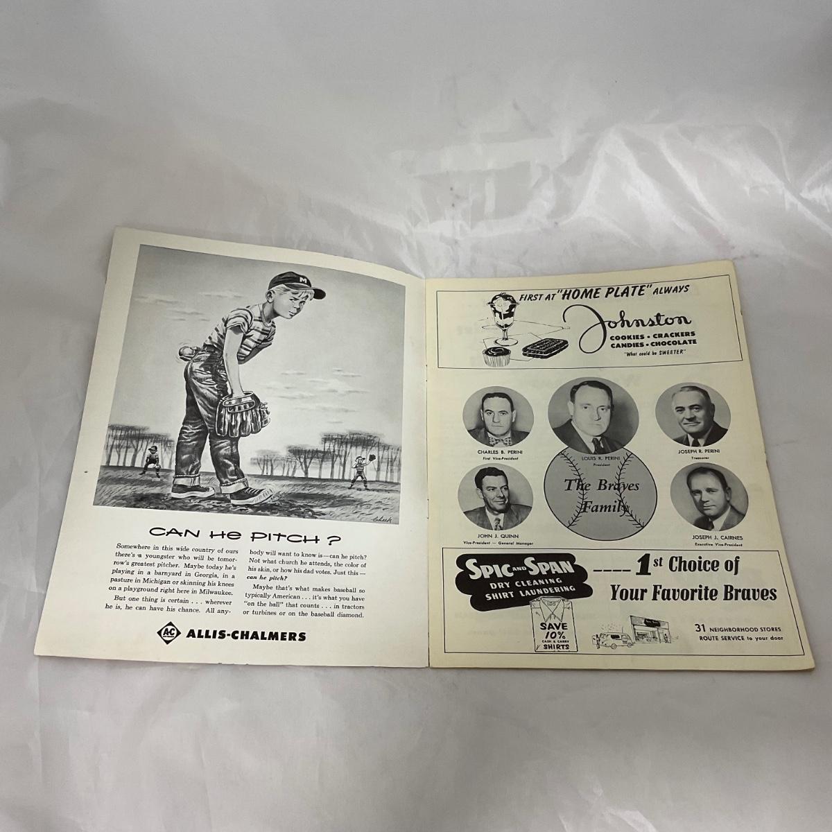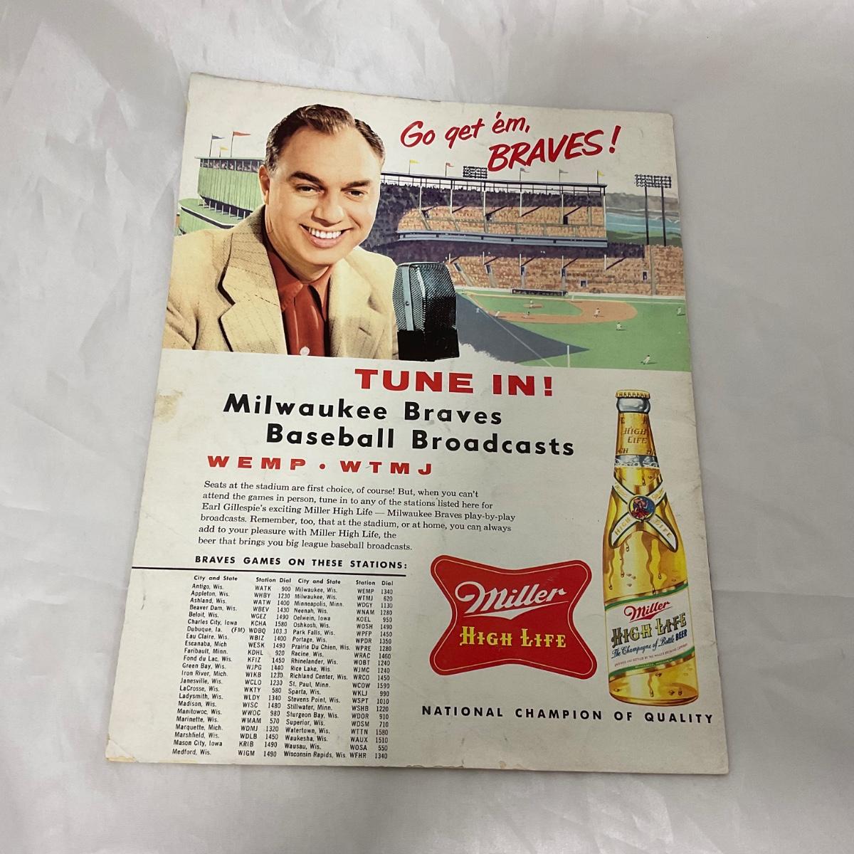 One vintage 1954 Milwaukee Braves Program. Please see photos for details and condition. ::: Shipping is available on this lot. If you require shipping you must let us know at the close of the auction. We will coordinate with you after the item has been won. Shipping fees will include insurance up to or exceeding the value of all items being mailed. If you have any questions regarding this lot please contact the auctioneer either via this website, by direct email or by phone. PICK UP TIMES and other important information can be found in the TERMS and DESCRIPTION of the auction. Please take a look for pertinent information. Thanks!