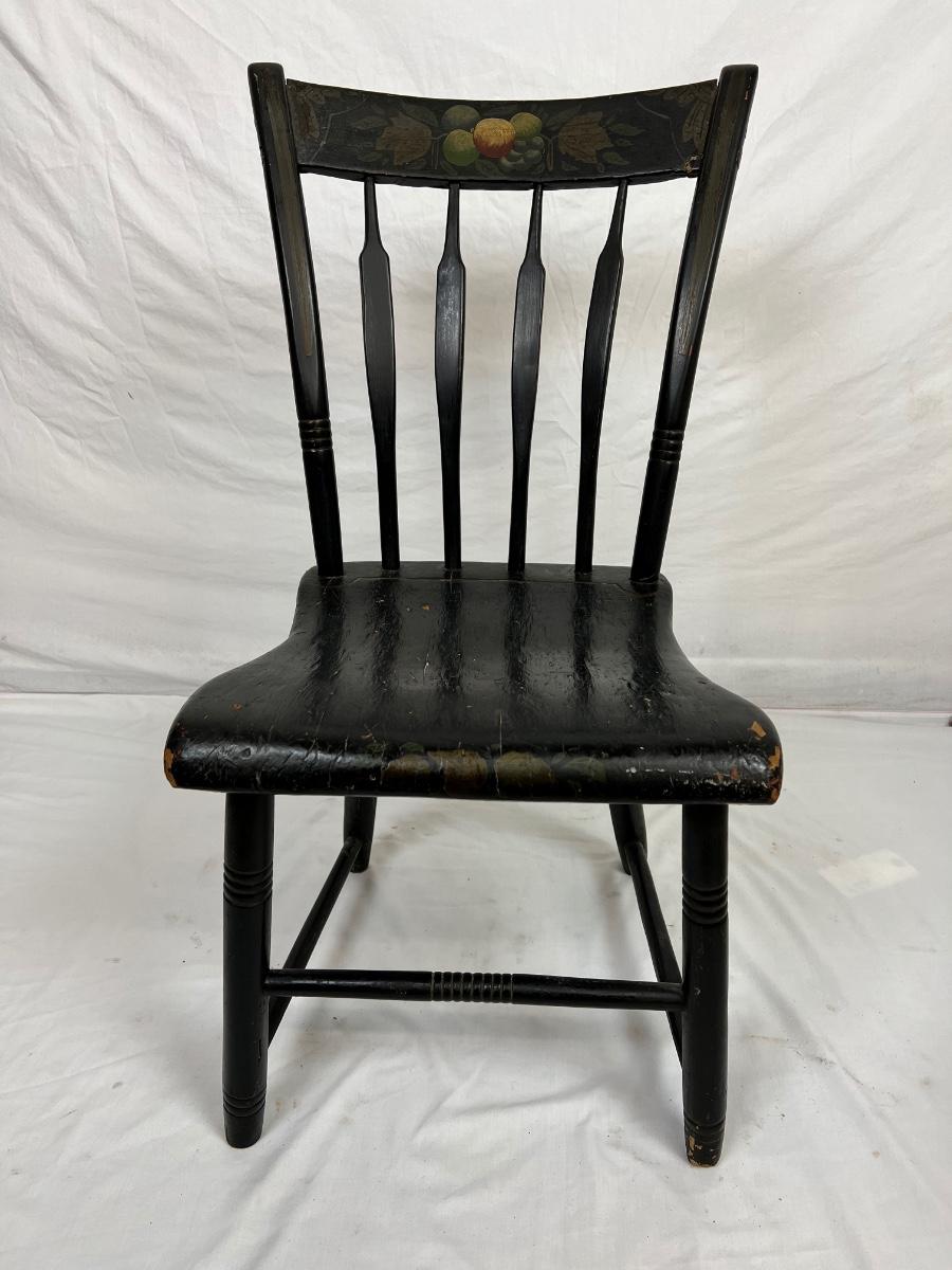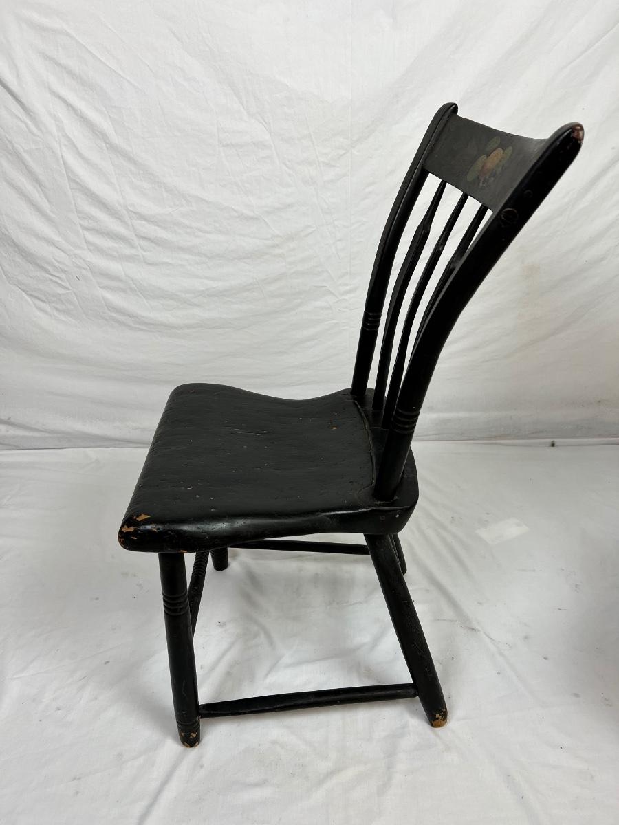 (the black painted chair has a loose back )