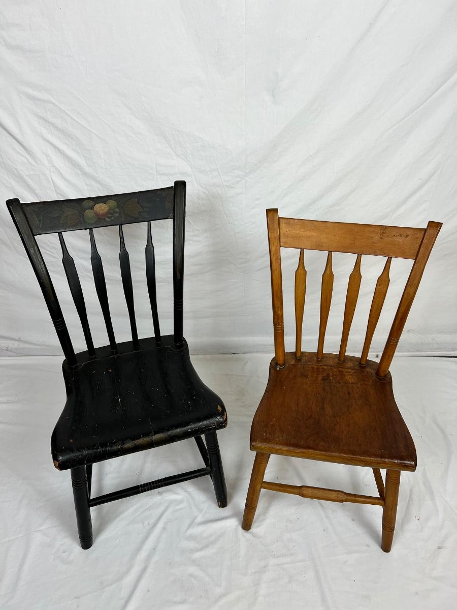 110 Two Antique Plank Bottom Arrow Back Chairs