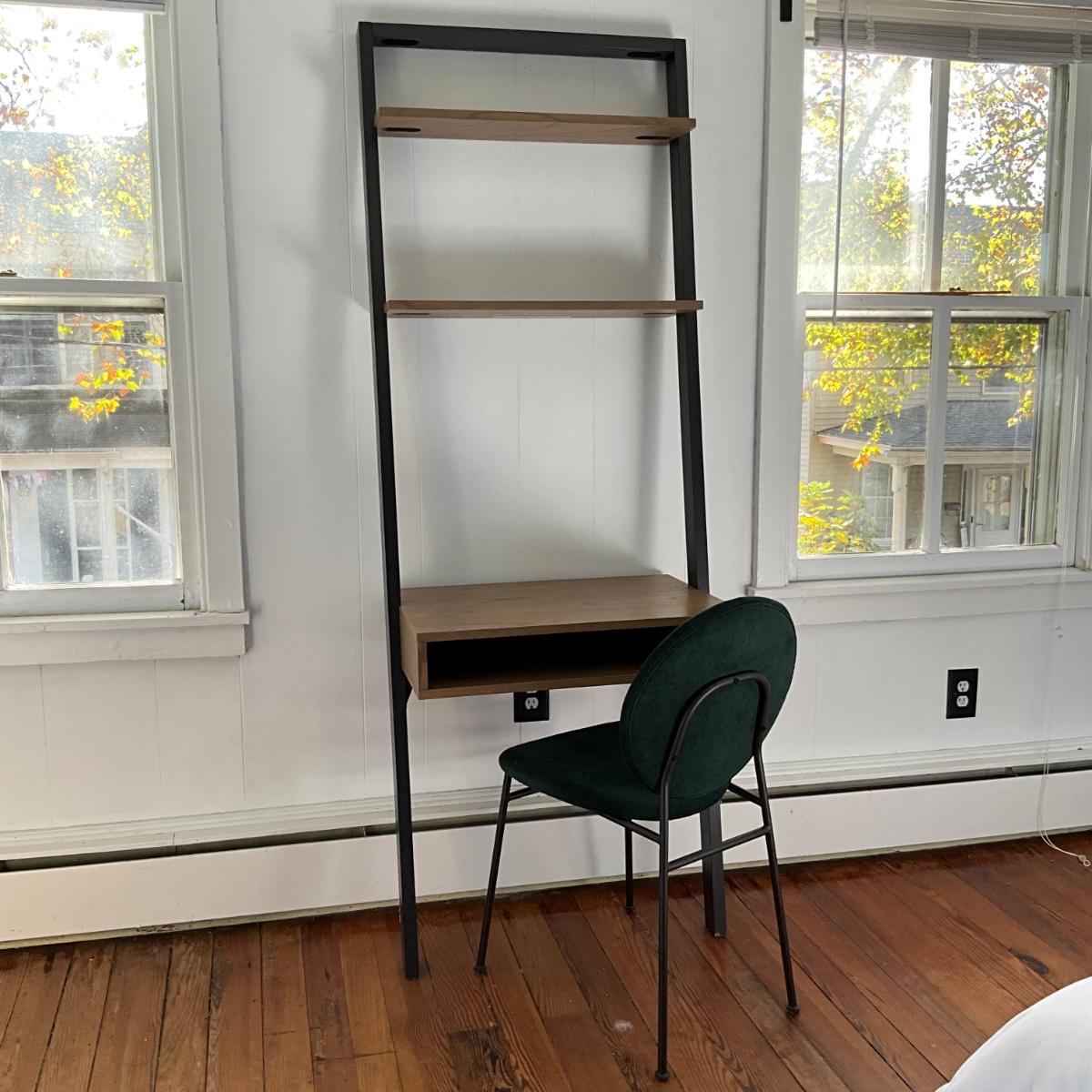 110 West Elm Leaning Shelf Desk with Green West Elm Chair