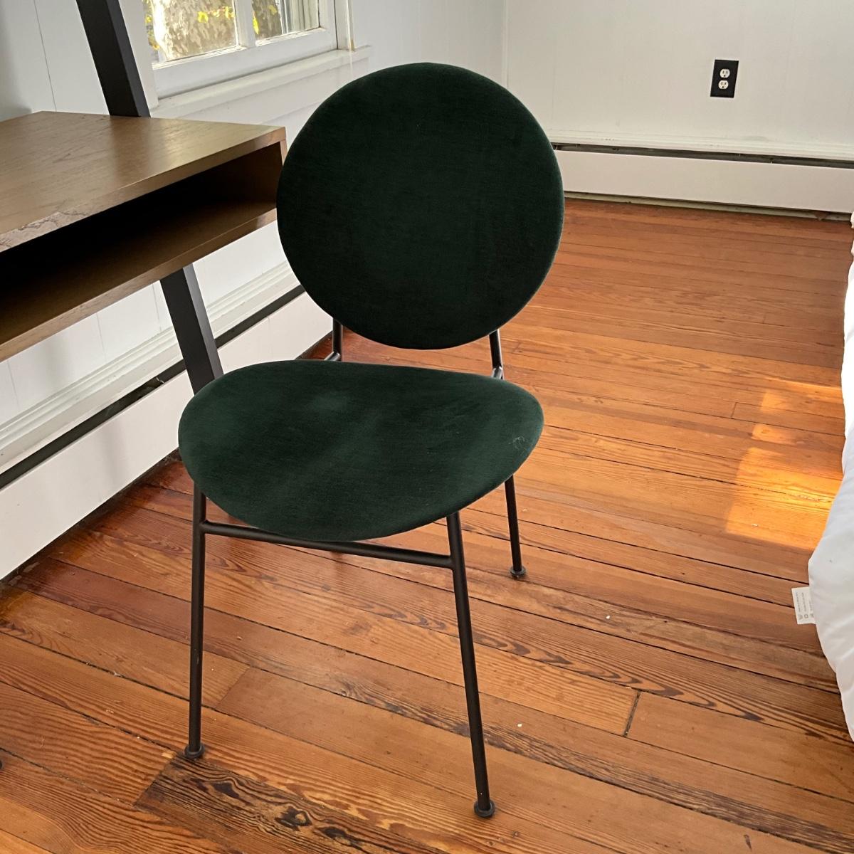 Chair is green in color and in good condition