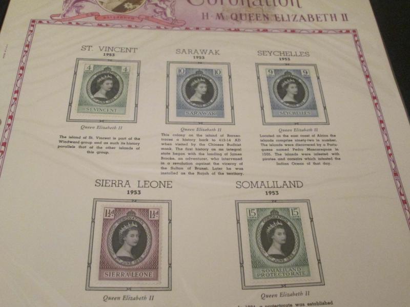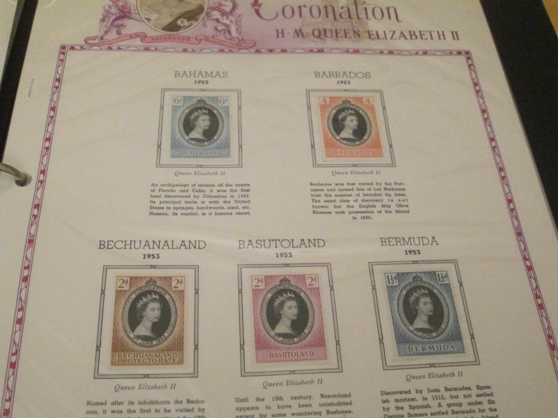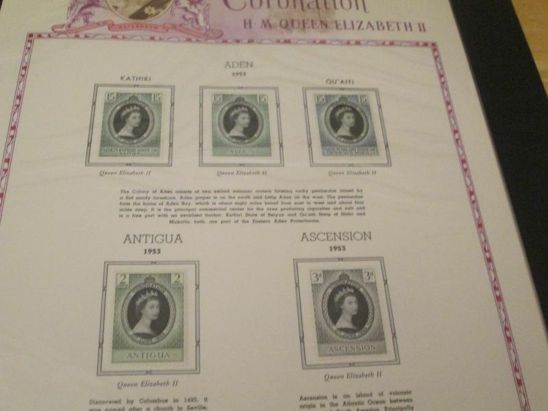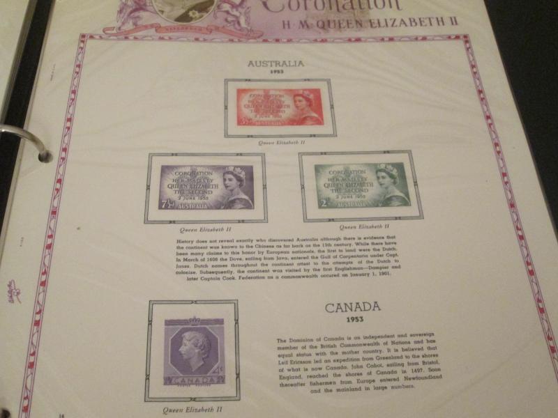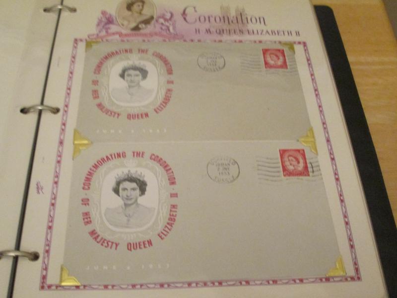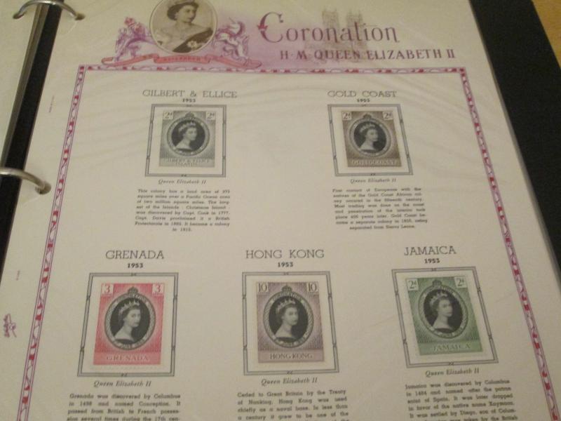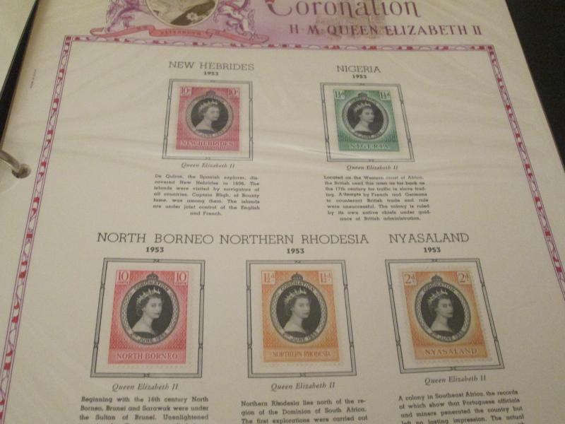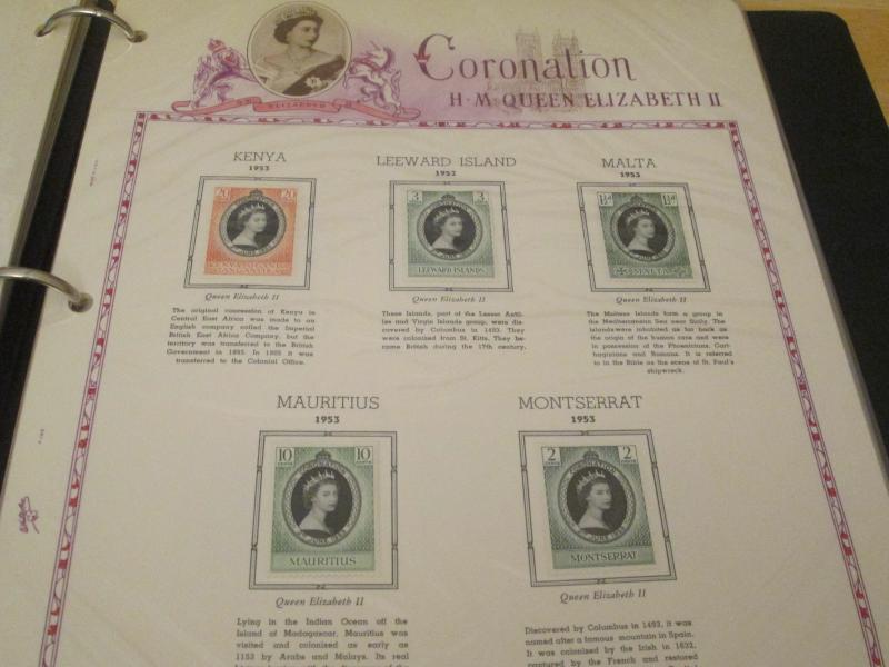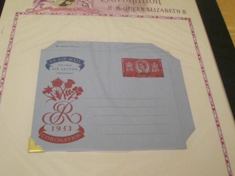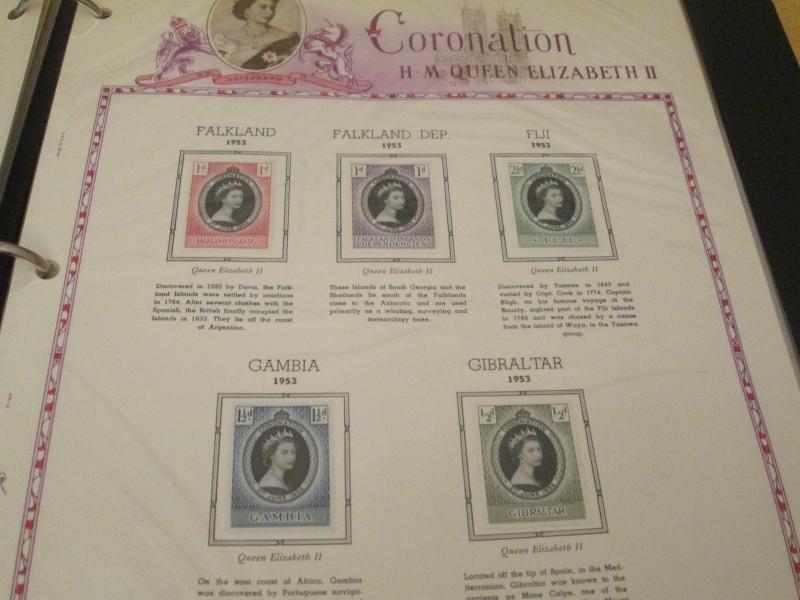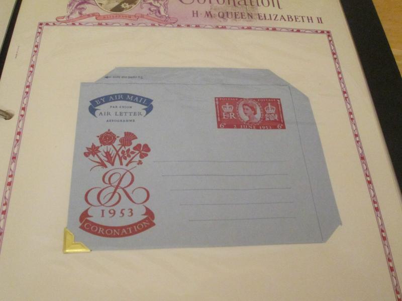White Ace stamp album for all of the stamps issued by the UK and British colonies in 1953 honoring the Coronation of Queen Elizabeth II. First Day Covers, Air Letters Aerogrammes
