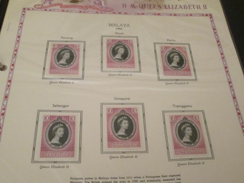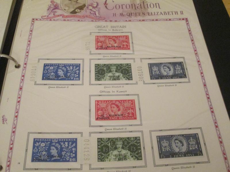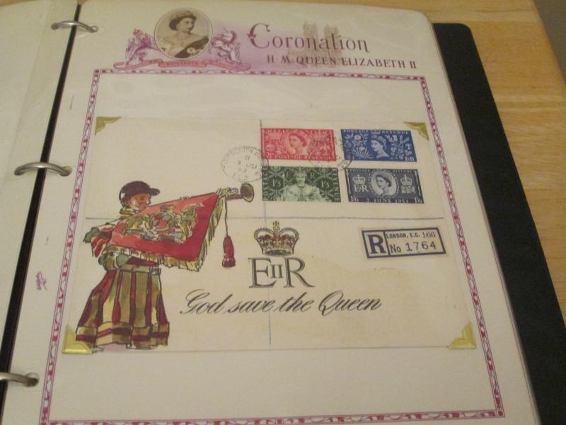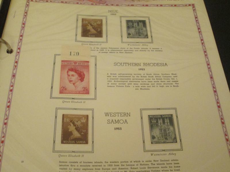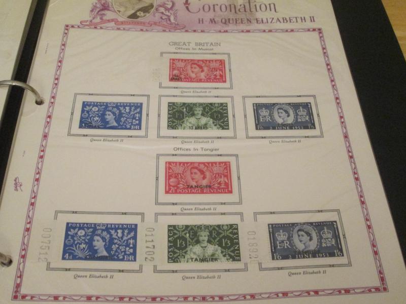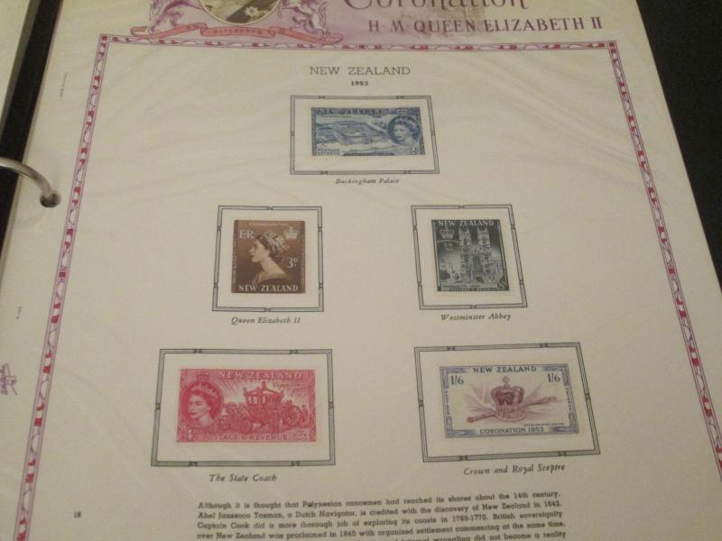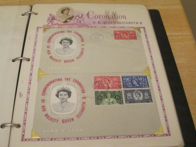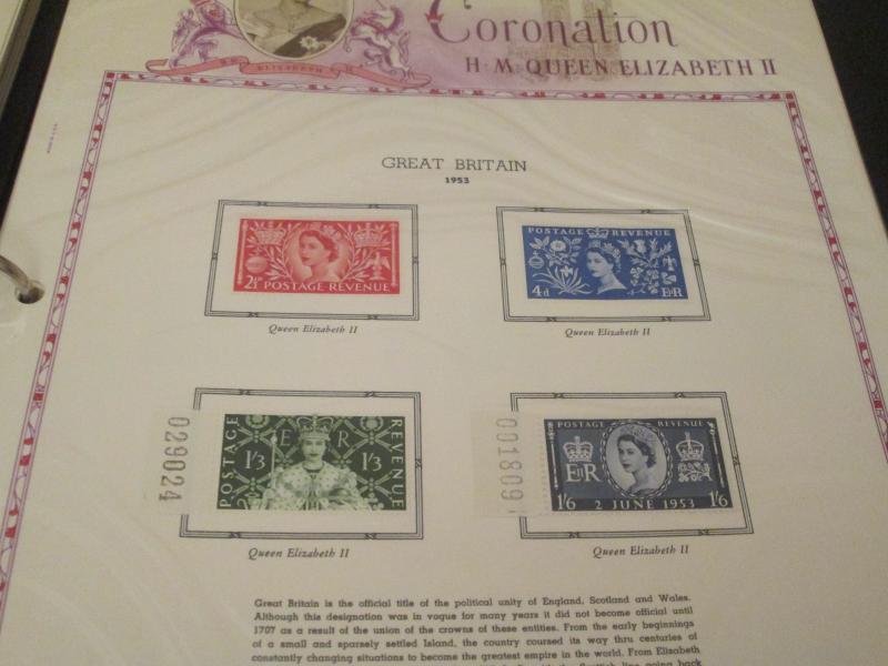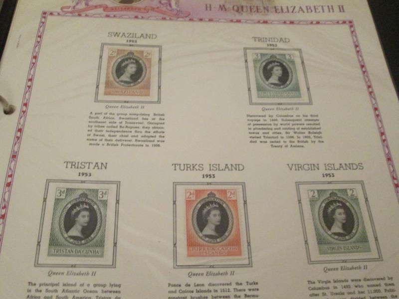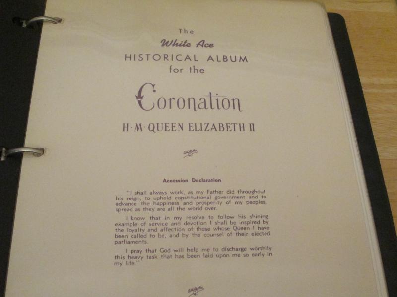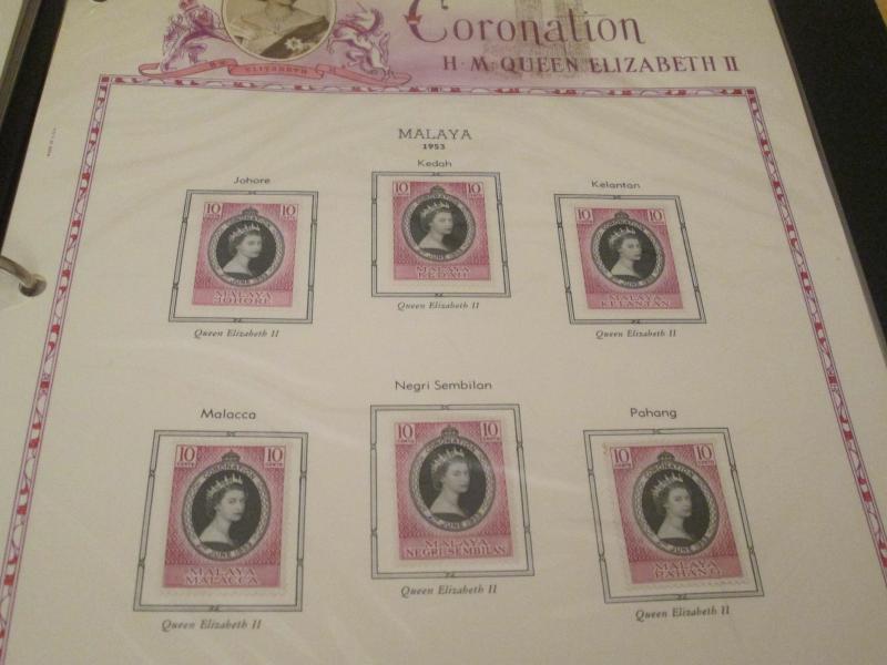 White Ace stamp album for all of the stamps issued by the UK and British colonies in 1953 honoring the Coronation of Queen Elizabeth II. First Day Covers, Air Letters Aerogrammes