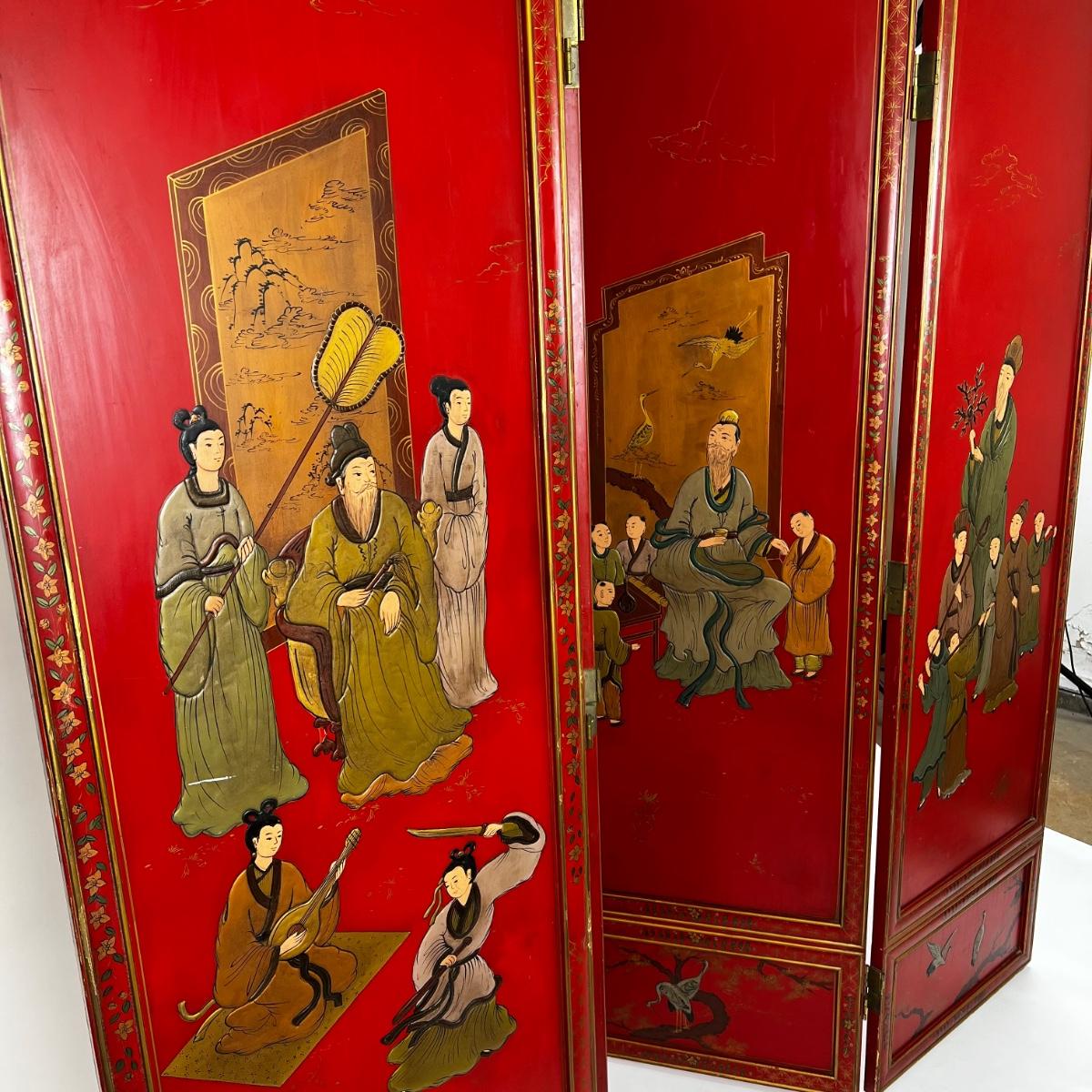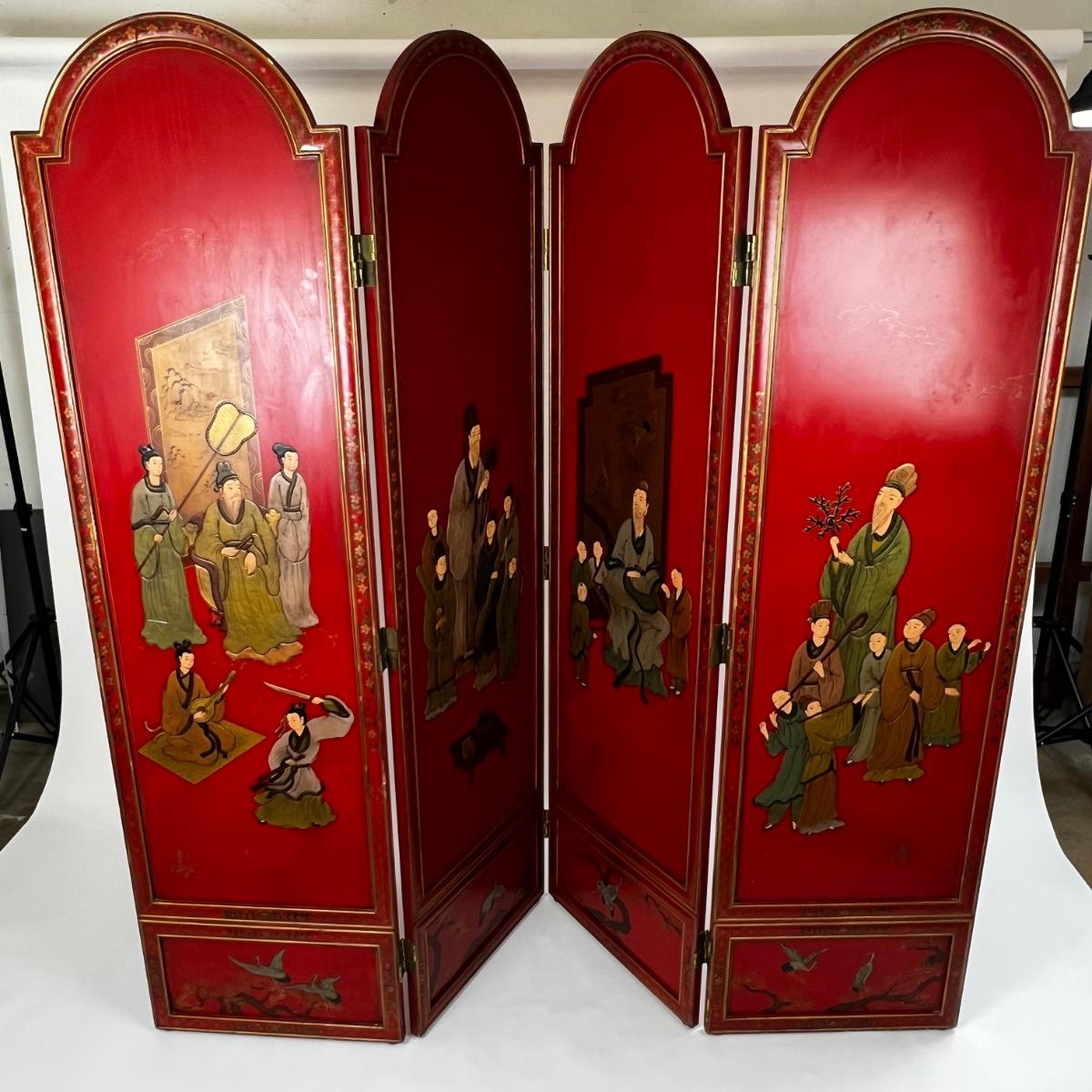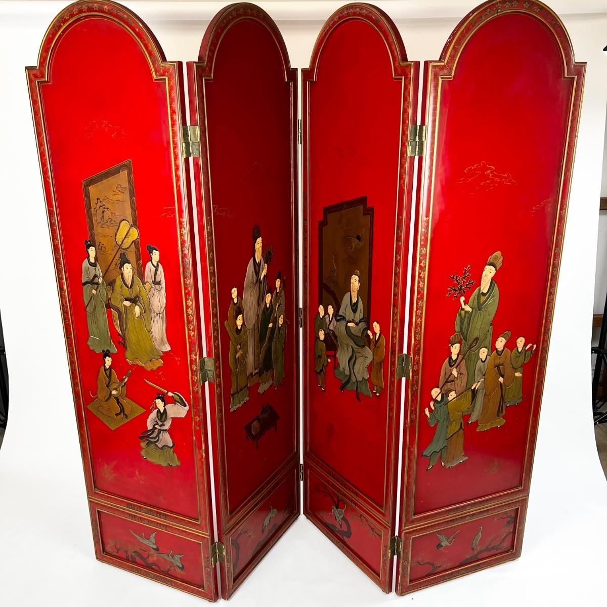 Vintage Korean Georgian Family Company 4-Panel Handmade Room Divider.