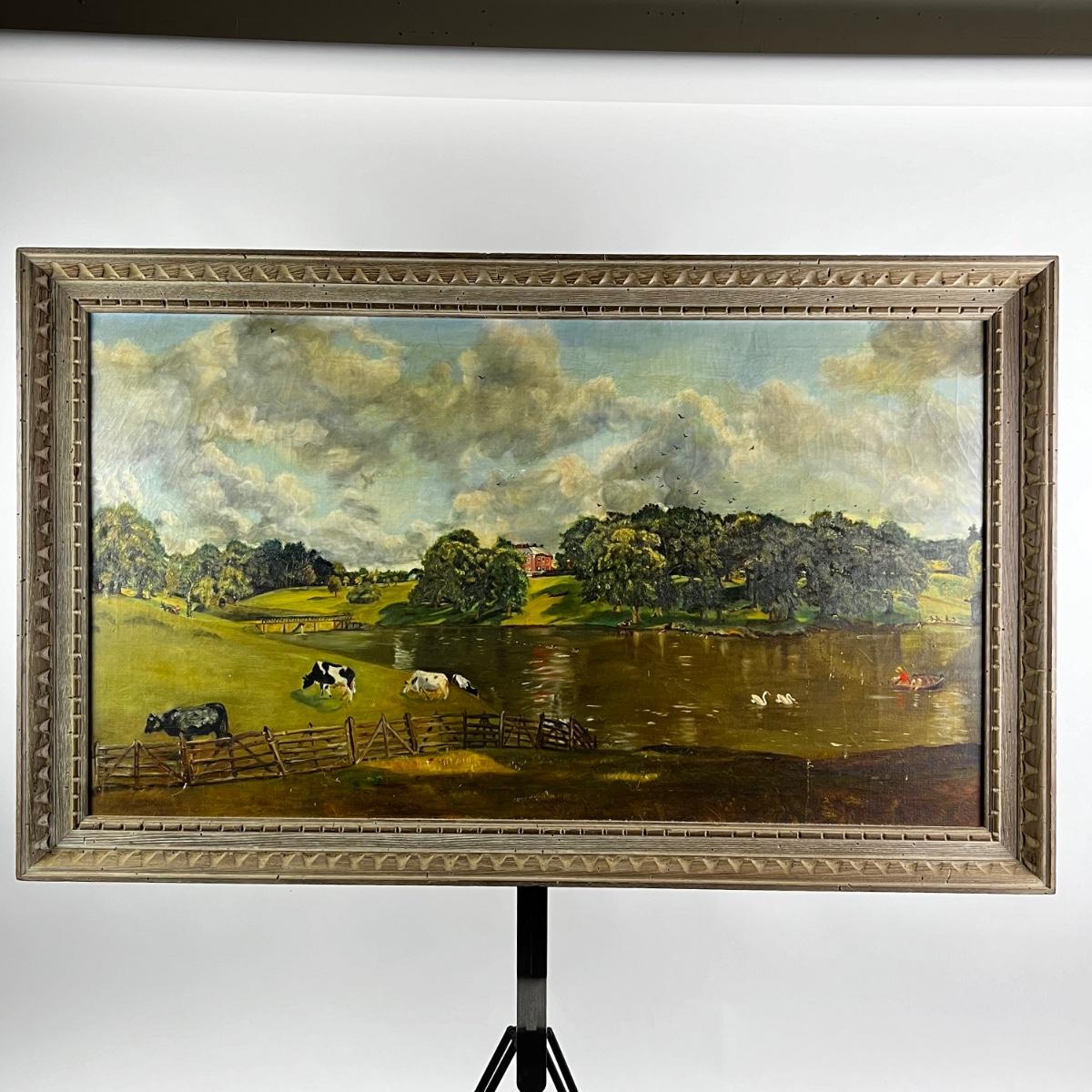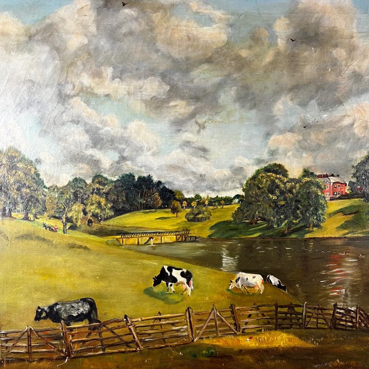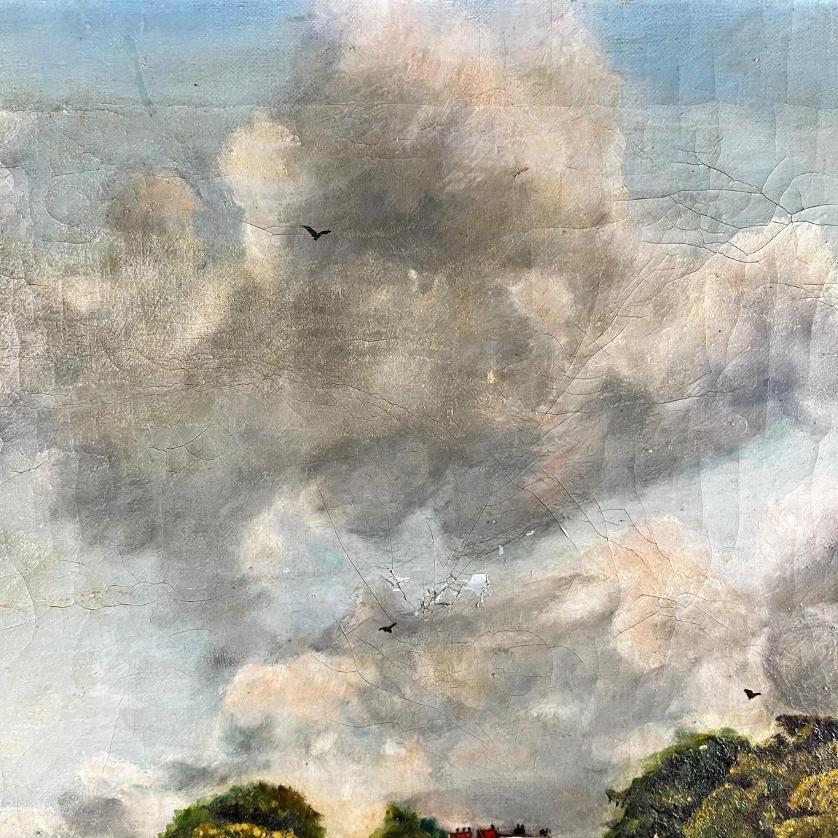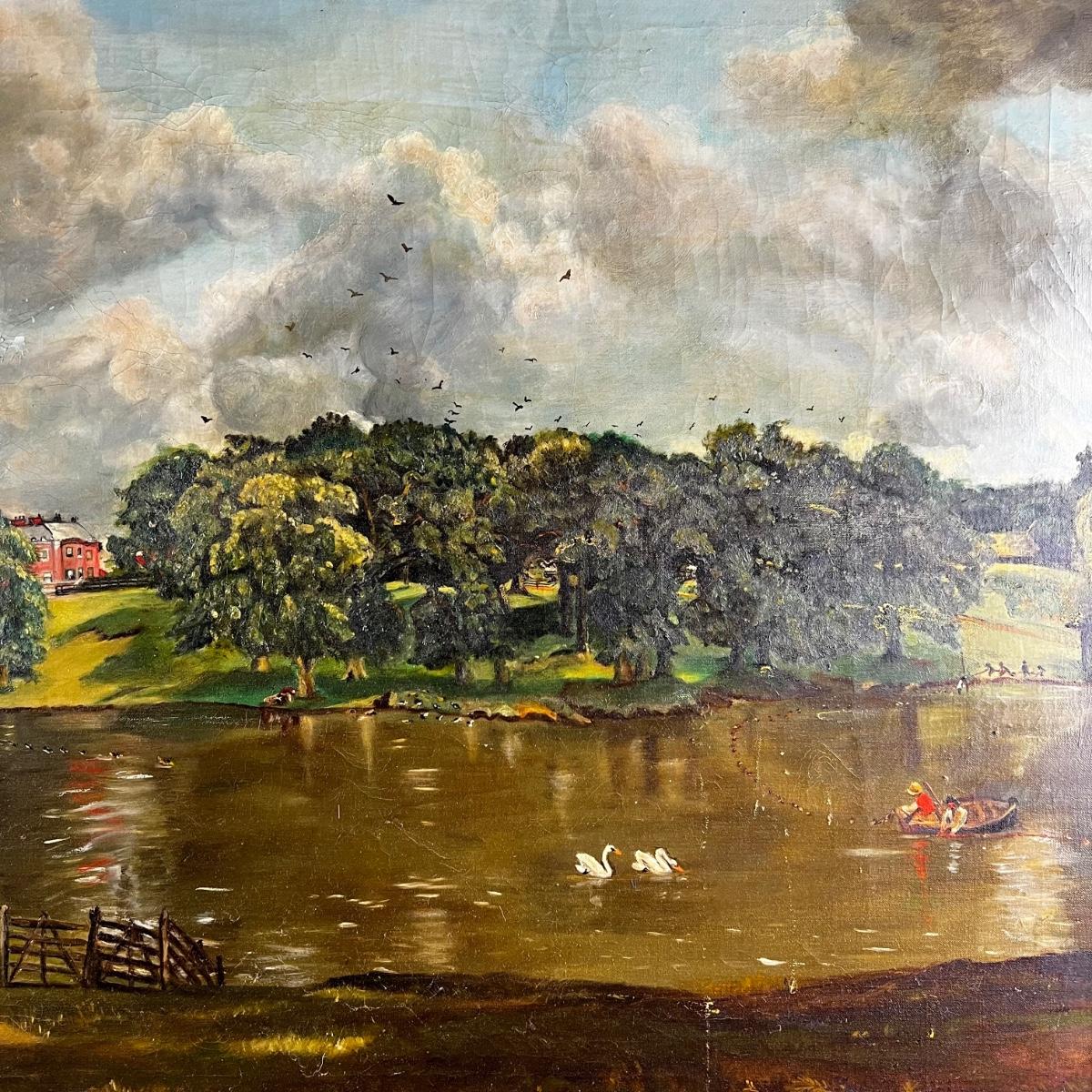 This piece of art is a reproduction and copy of the artist John Constable. It is painted with oil on canvas and was really well done to look identical to the real art piece.