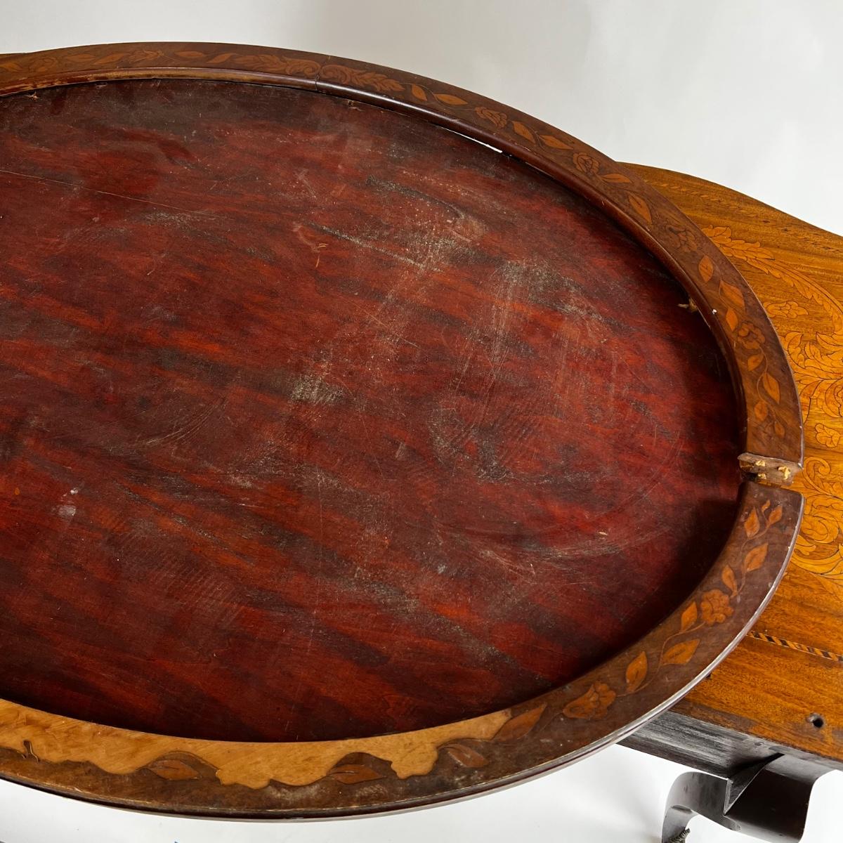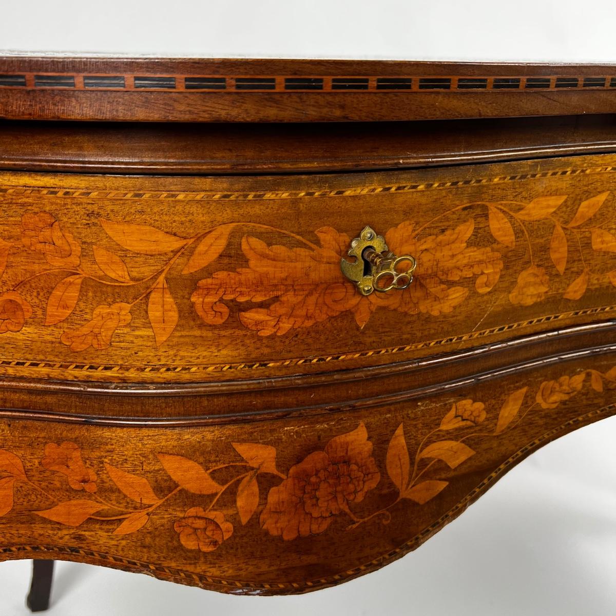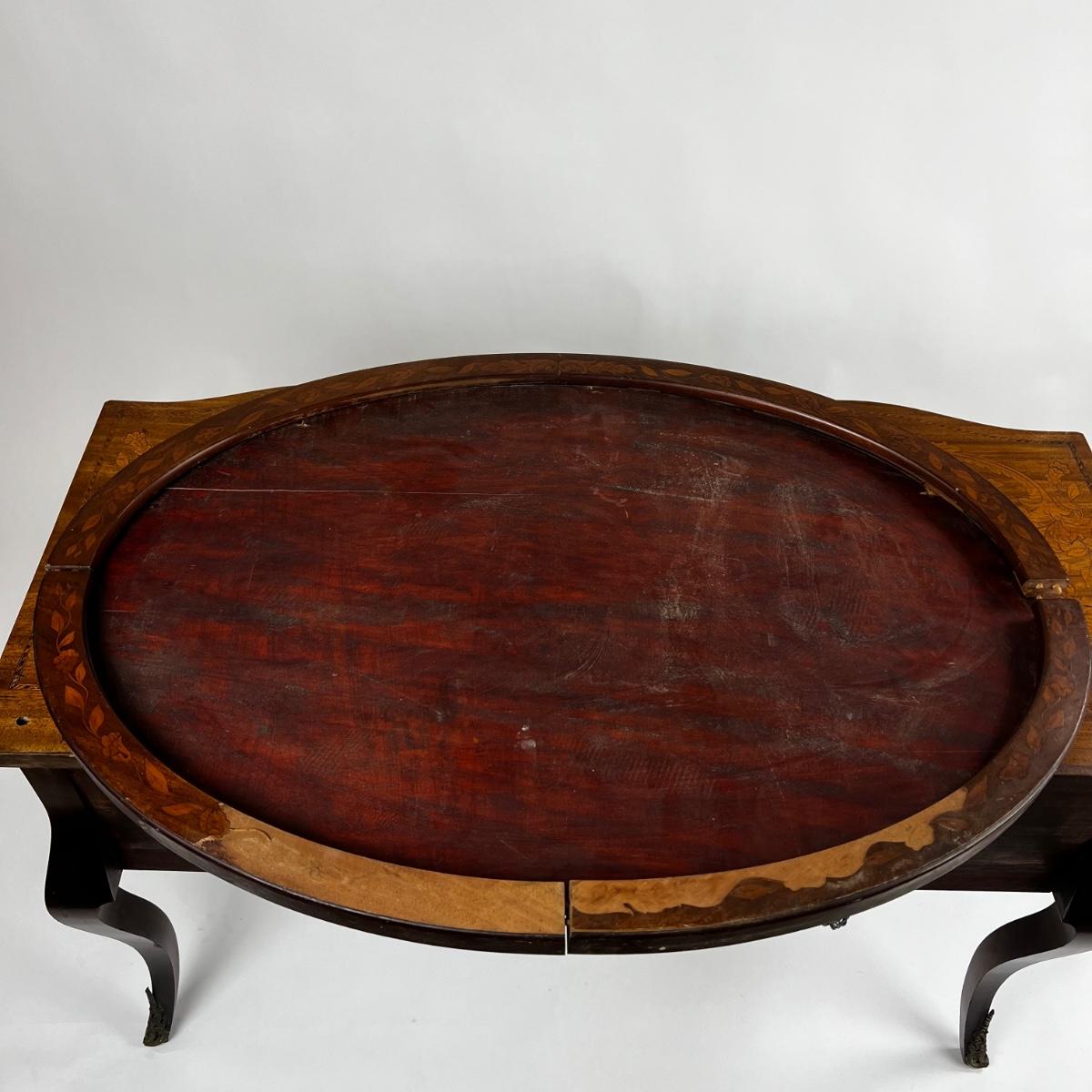 1101 Antique Dutch Marquetry Inlaid Vanity Desk & Dutch Marquetry Vanity Bench