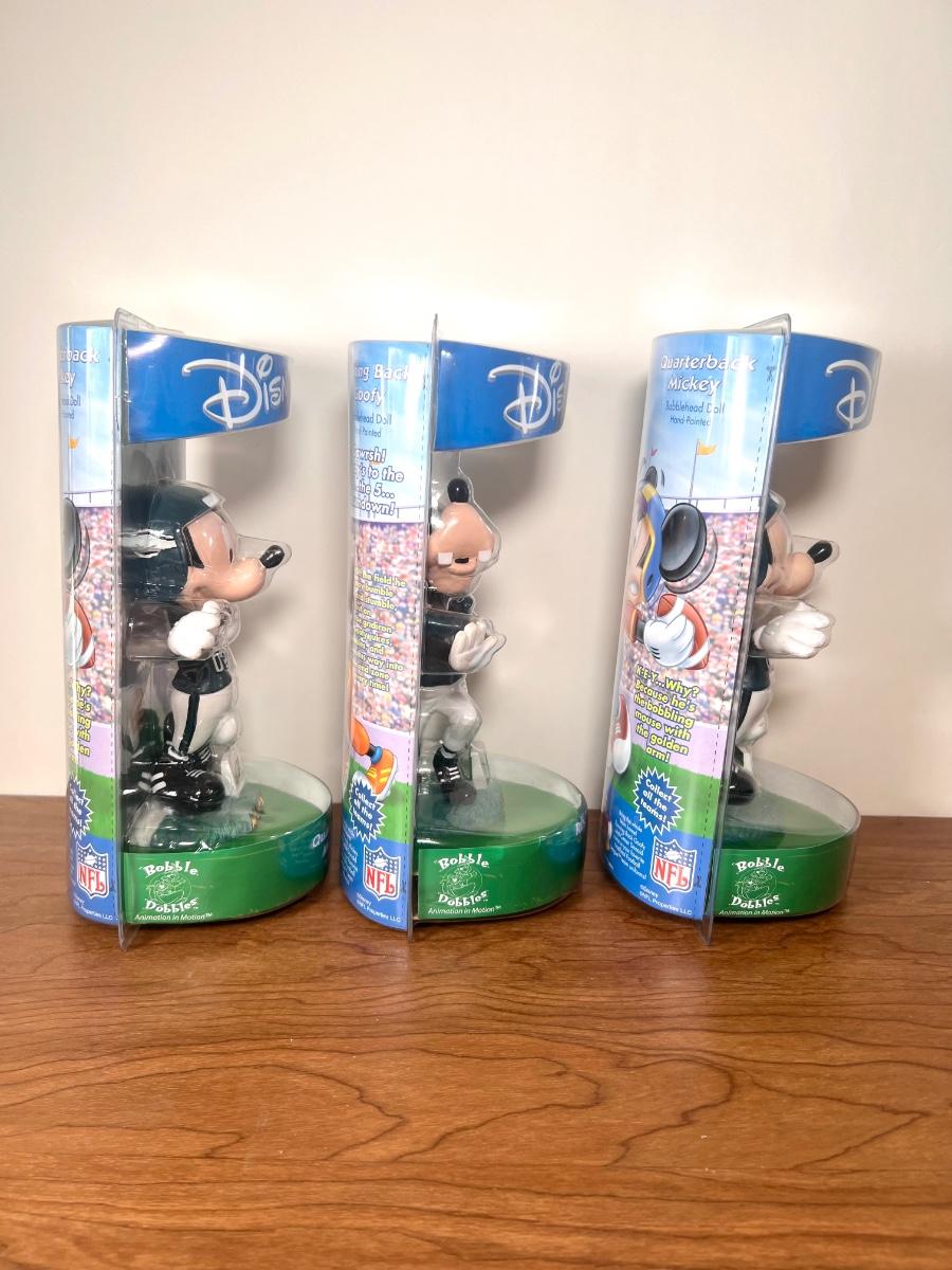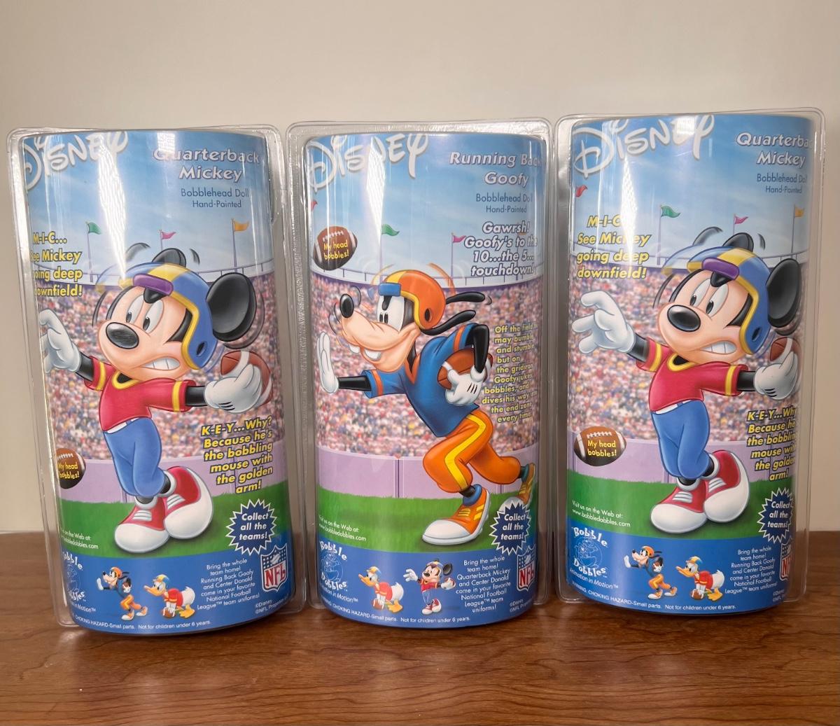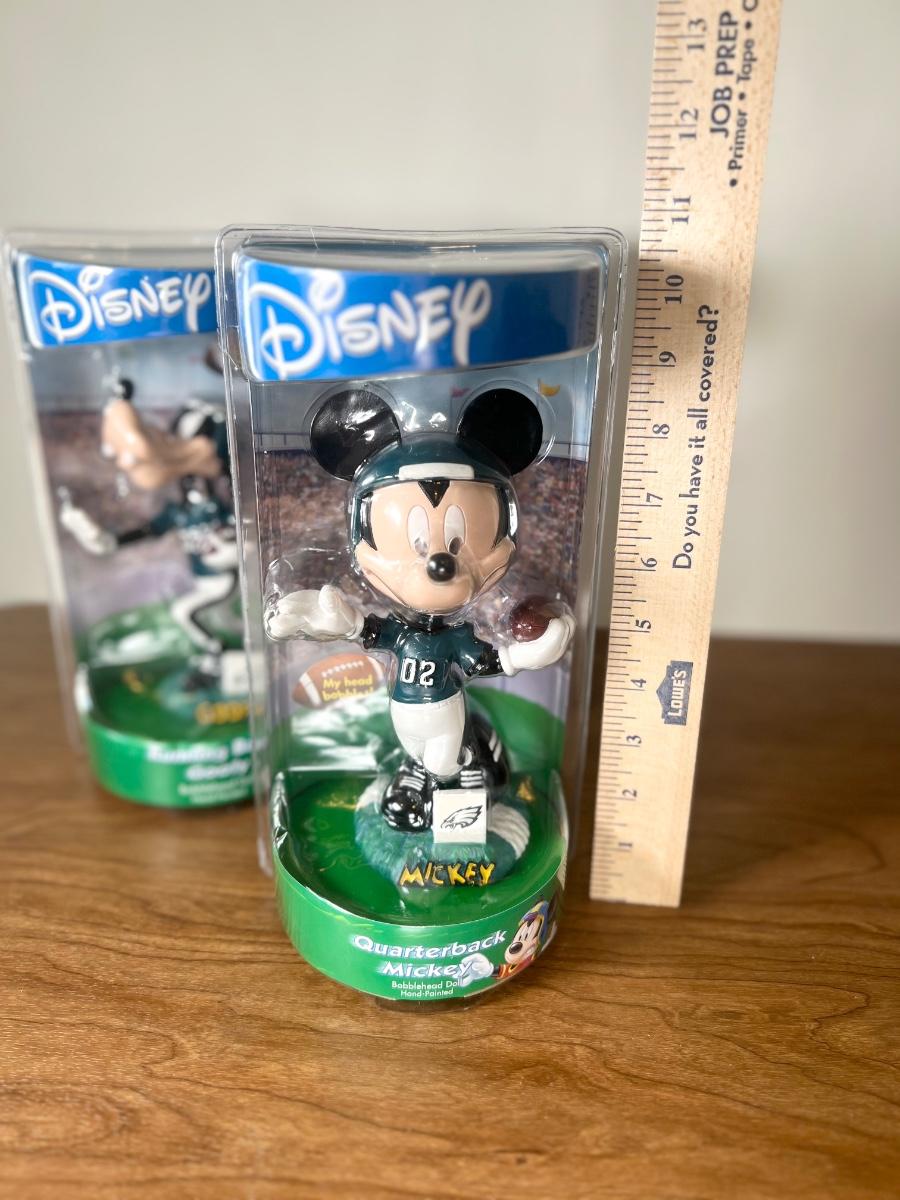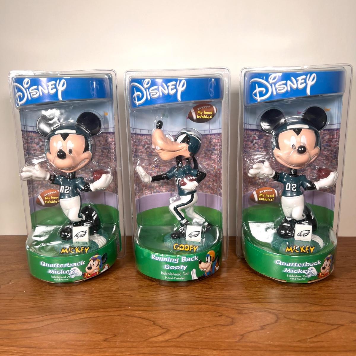 LOT 3B: NIP Disney Bobble Dobbles Philadelphia Eagles Football Bobbleheads - 2 Mickeys & Goofy