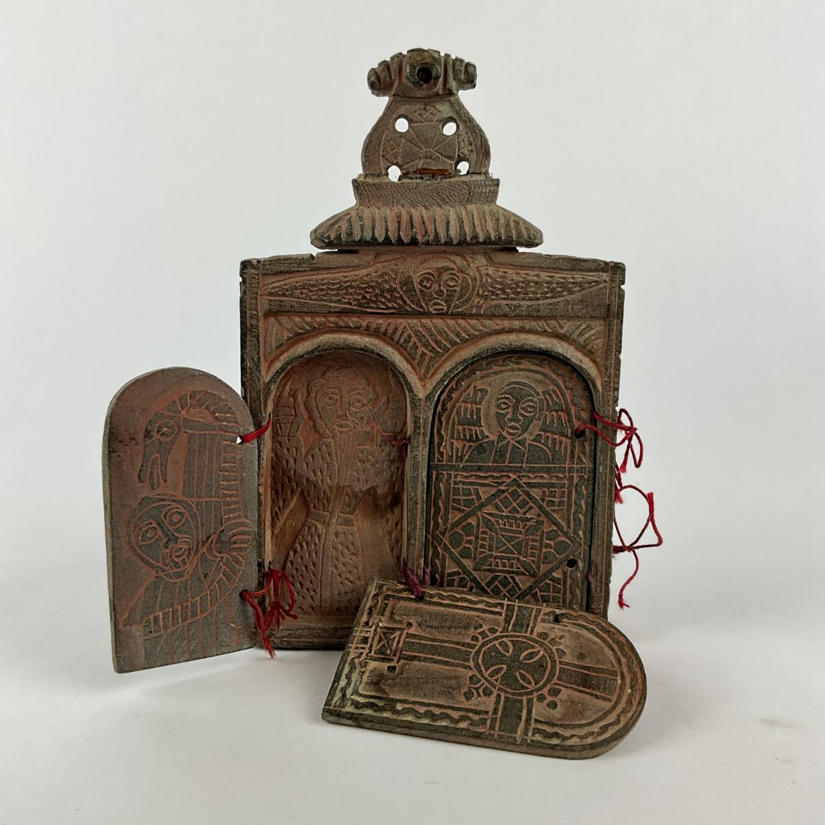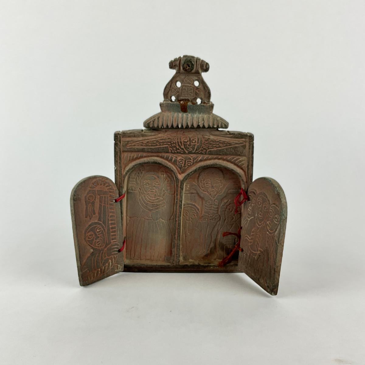 1102 Late 18th Century Coptic Christian Double-Door Portable Triptych Icon