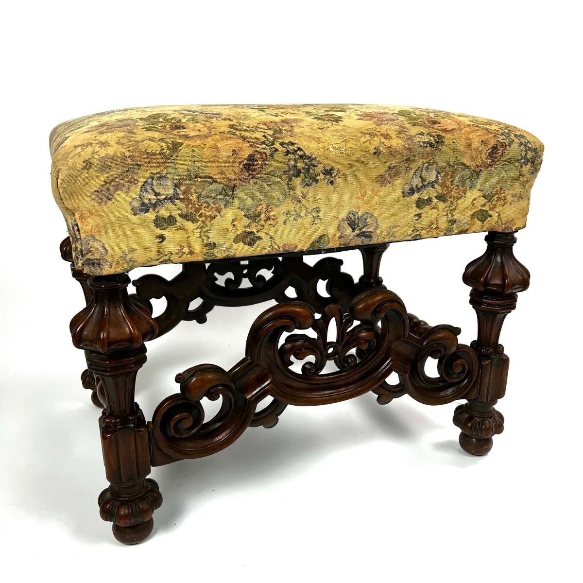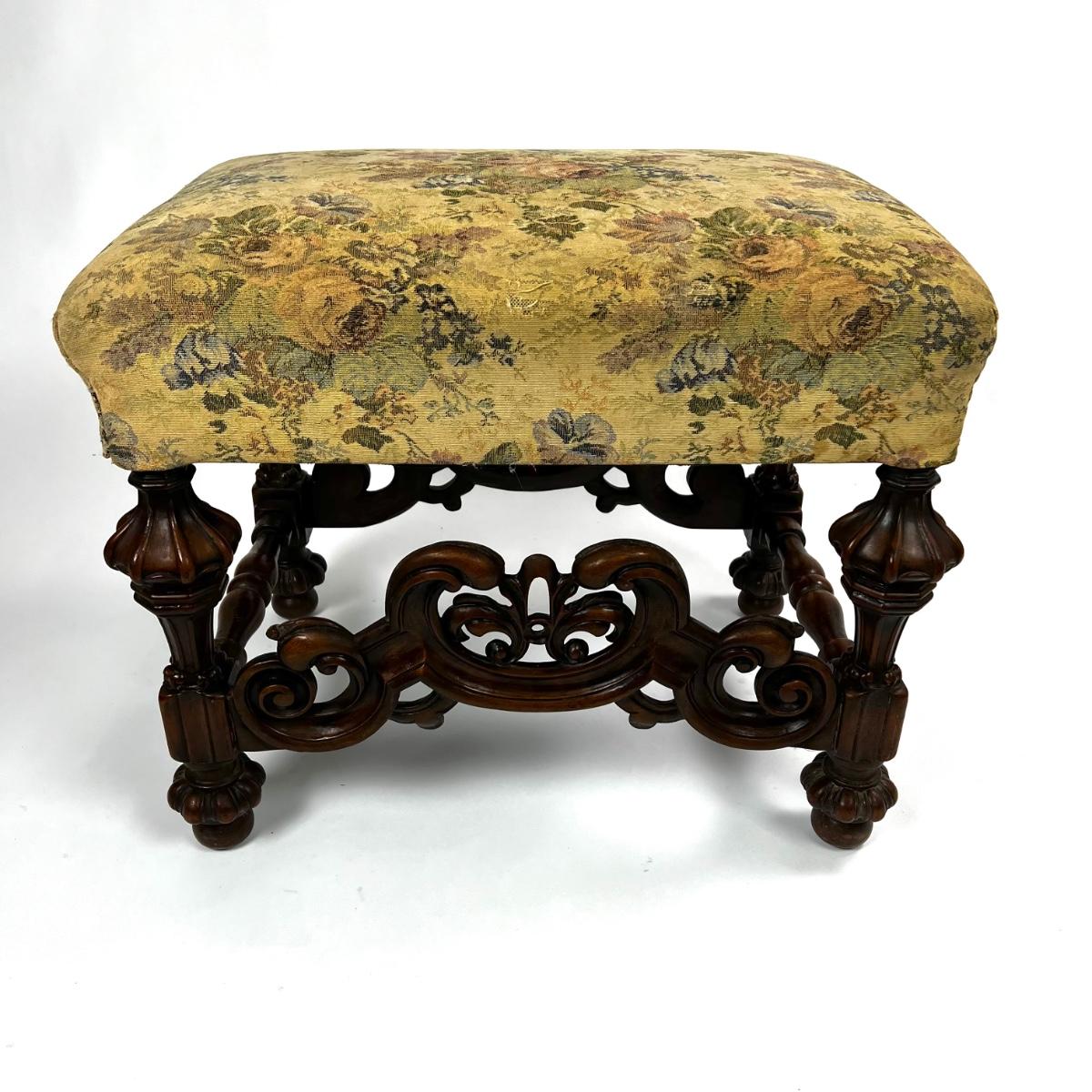 1104 Antique Italian Baroque Carved Ottoman with Tapestry Seat