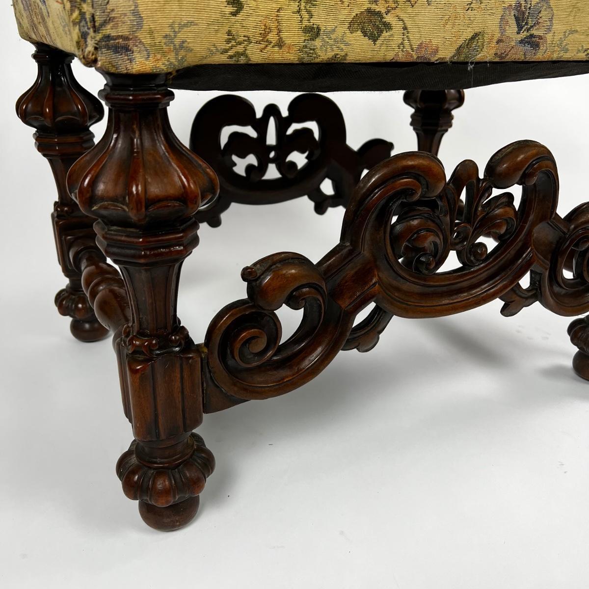 Antique Italian Baroque Carved Ottoman with Tapestry Seat.