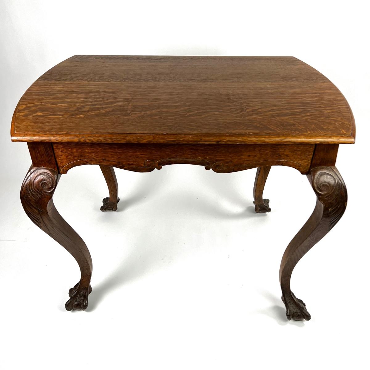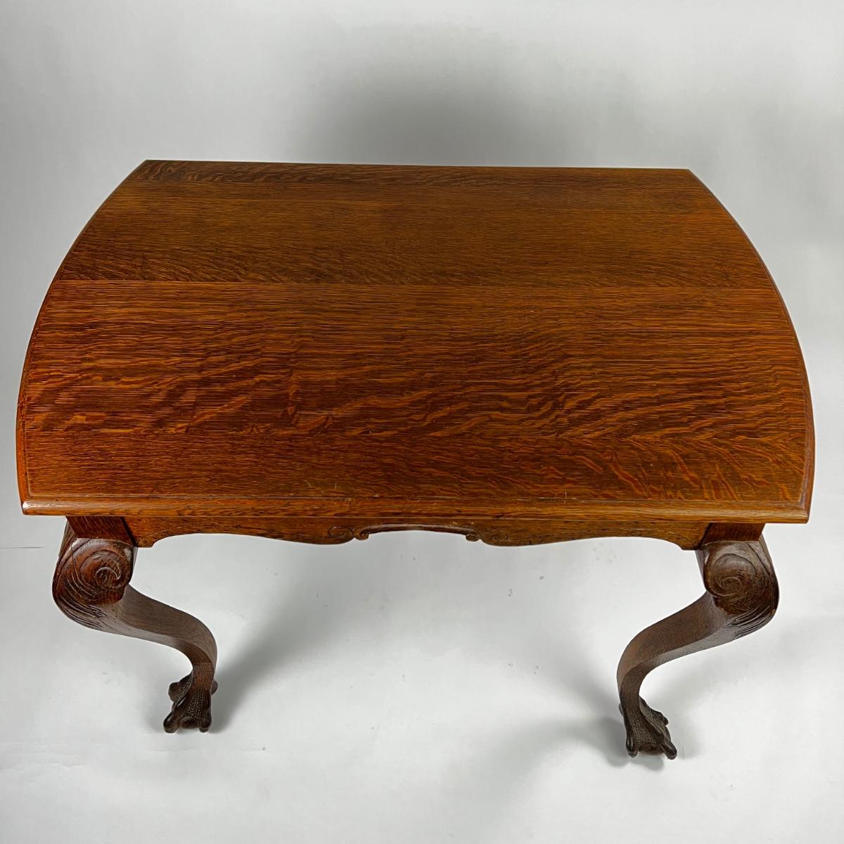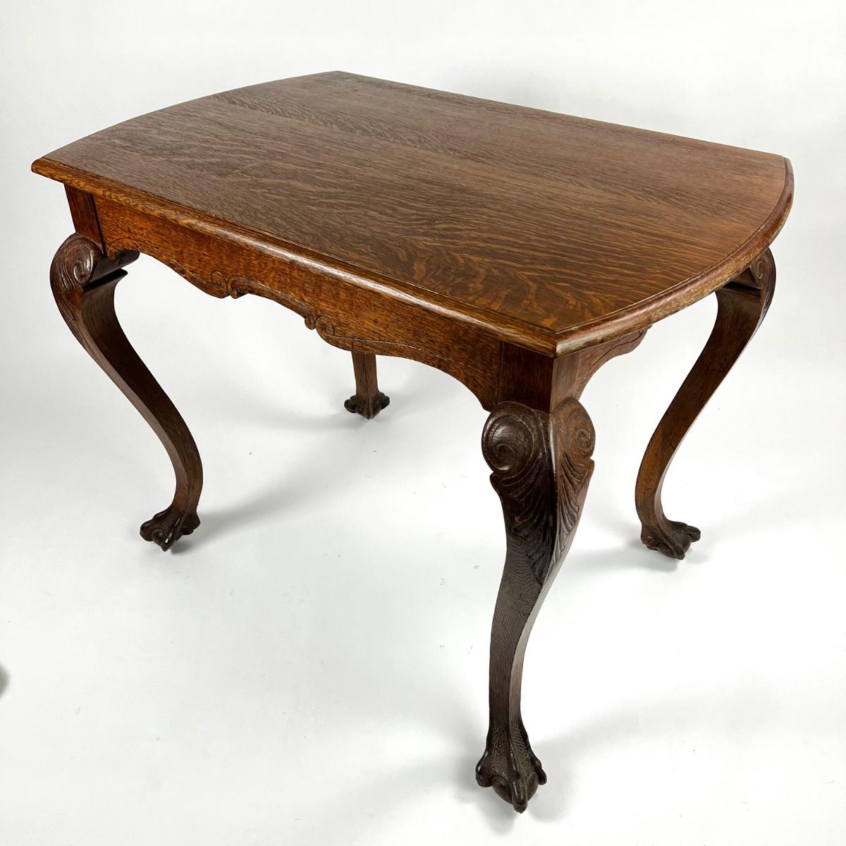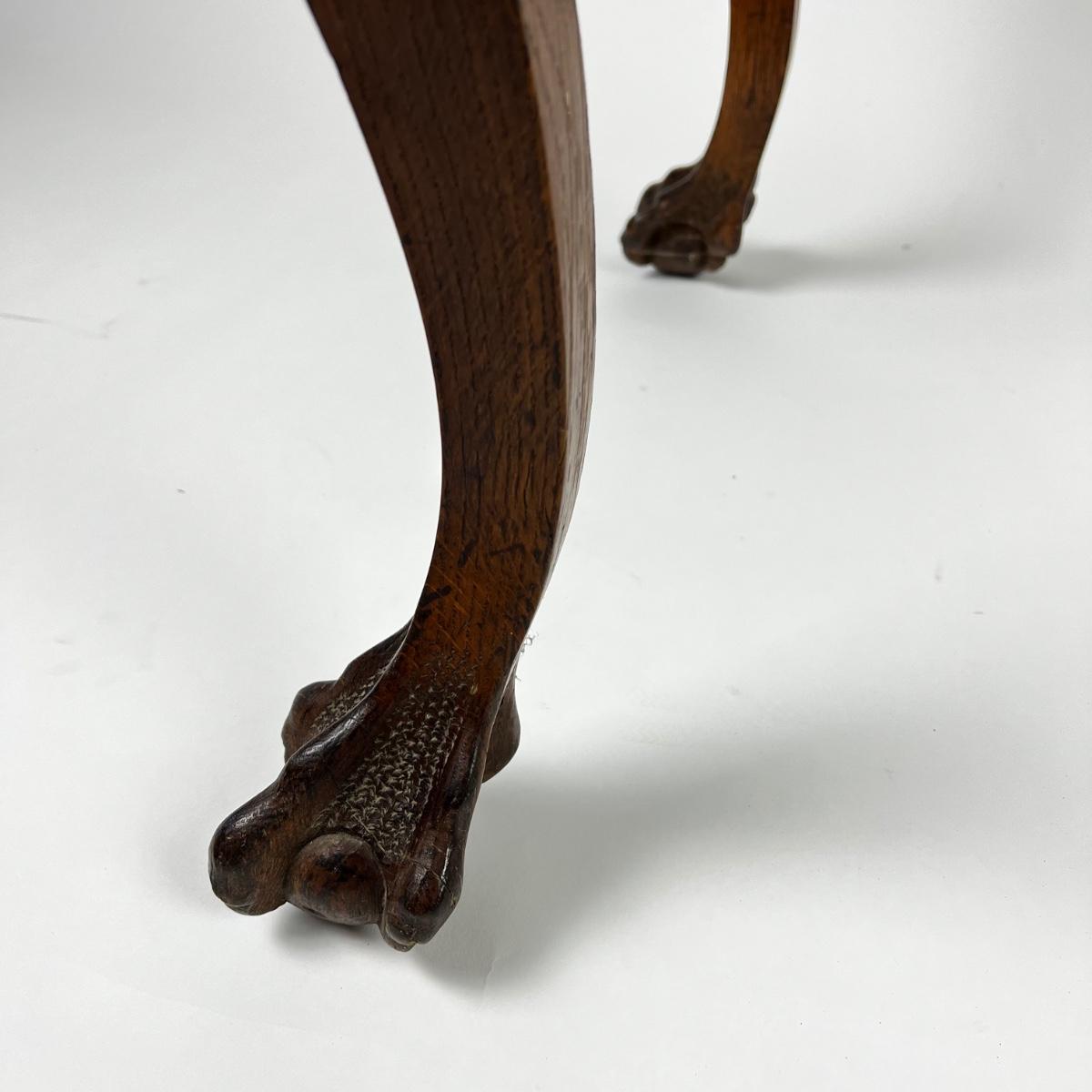 Antique Carved Oak English Occasional Table has cabriole legs and acanthus motif details with ball & clawed feet.
