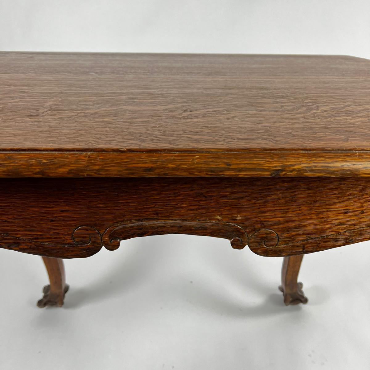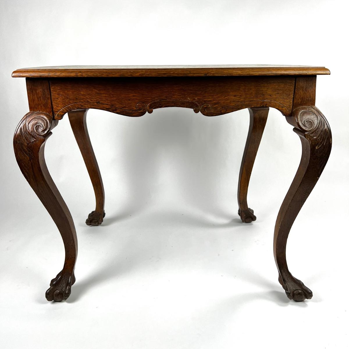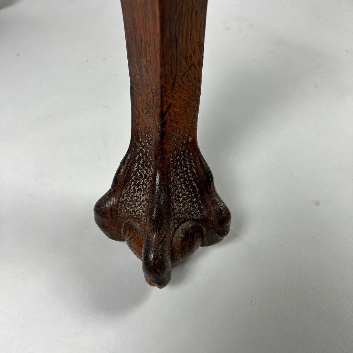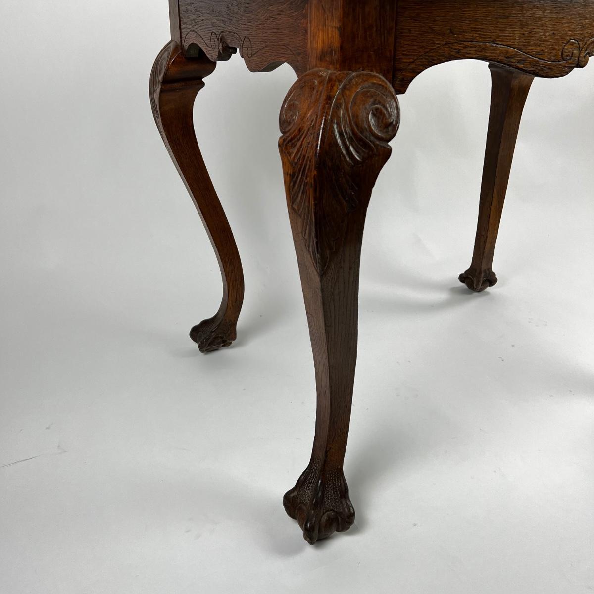 Antique Carved Oak English Occasional Table has cabriole legs and acanthus motif details with ball & clawed feet.