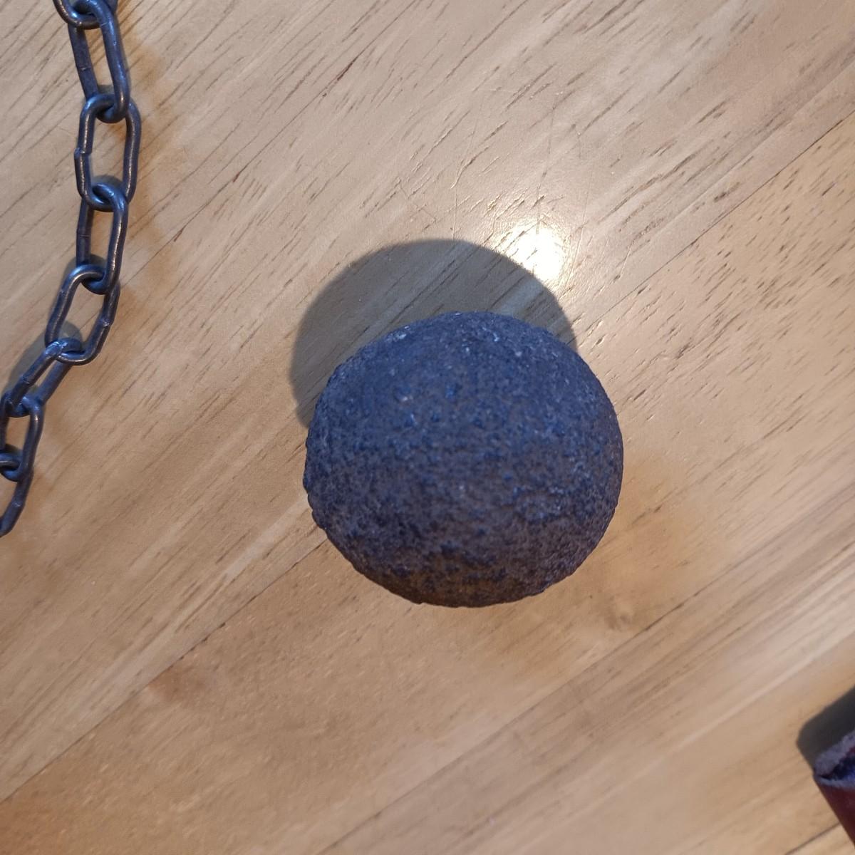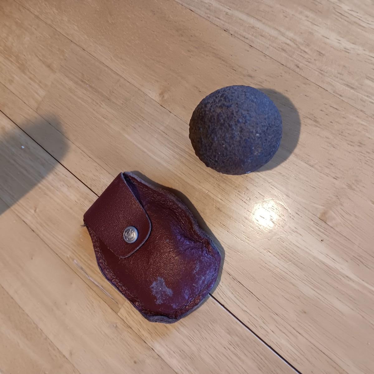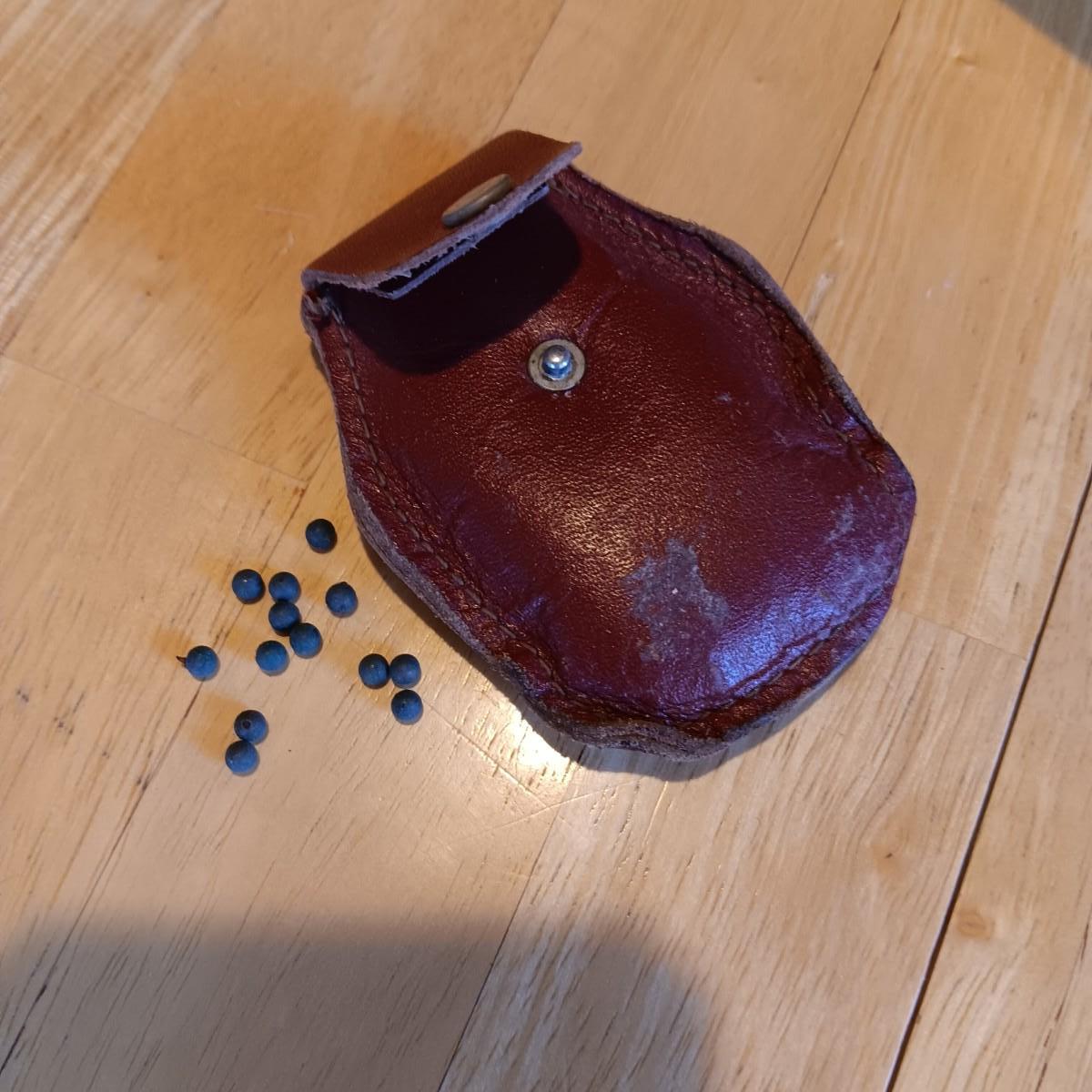 ALSO INCLUDES A SOLID CAST IRON BALL AND LEATHER DAISY POUCH WITH IRON BB'S