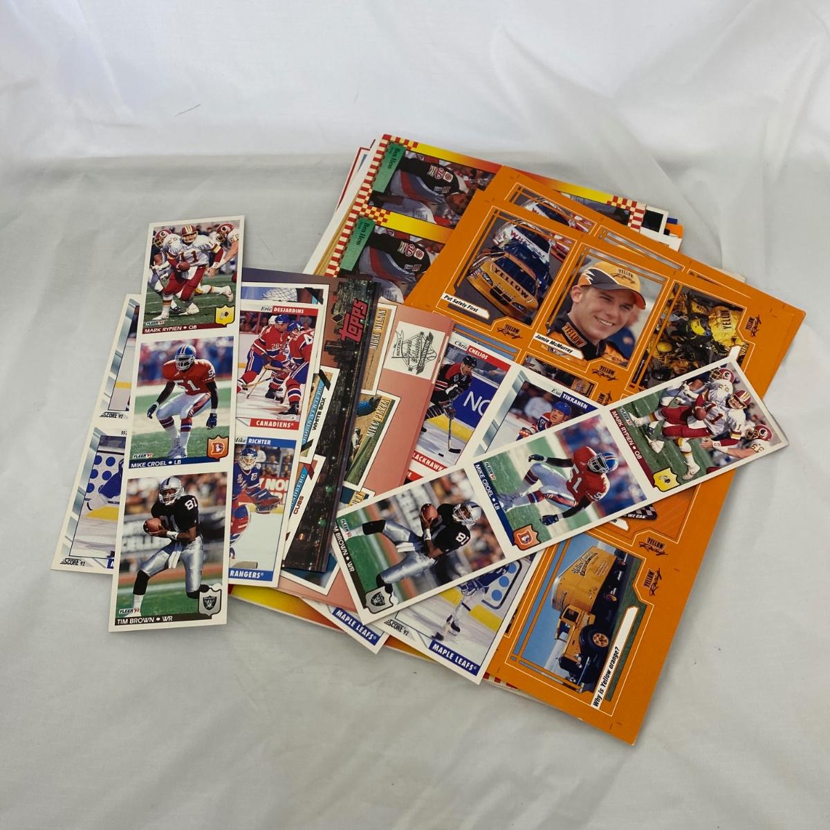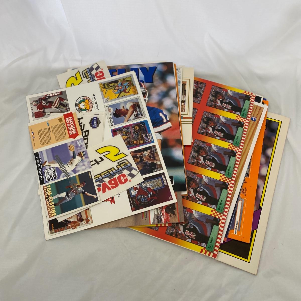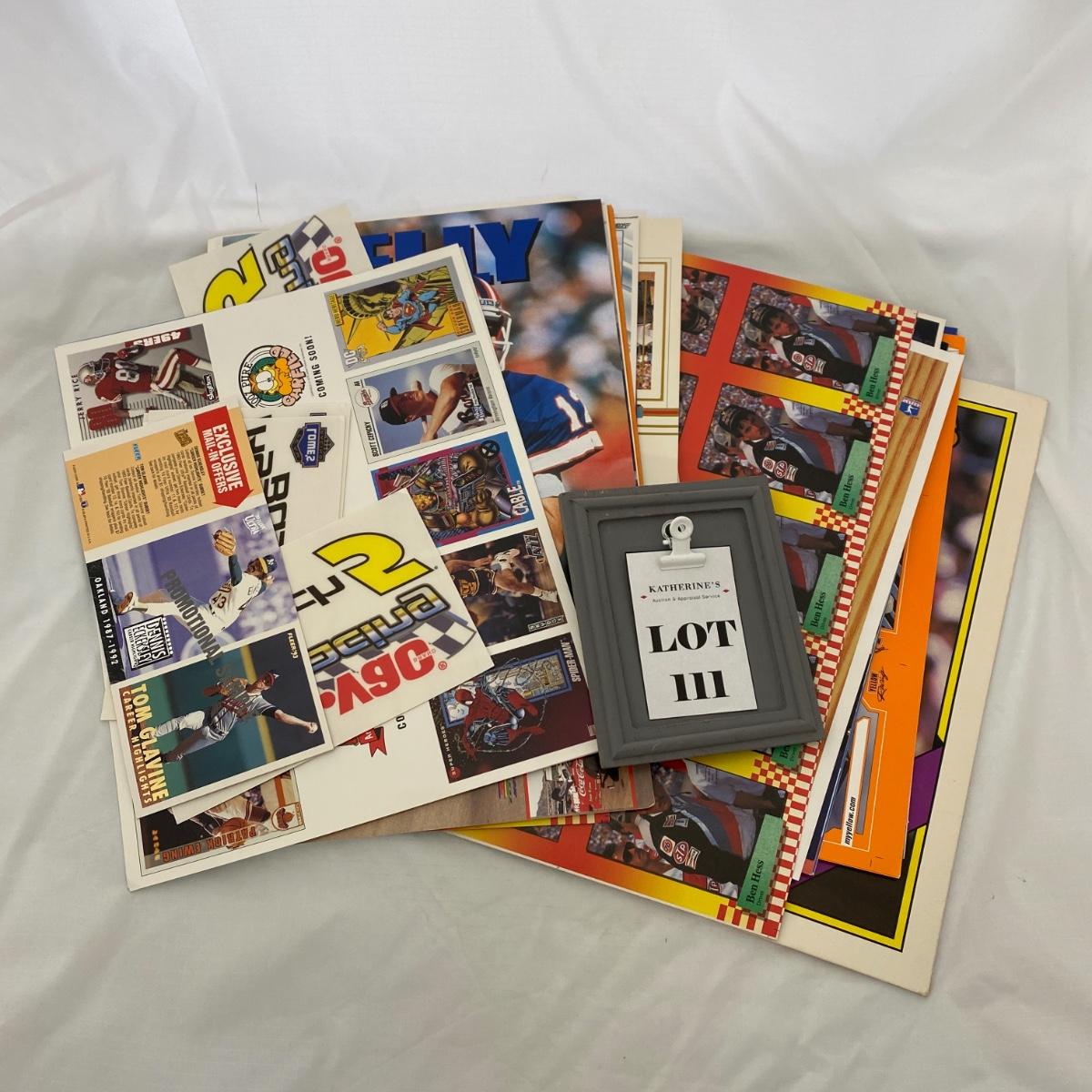 Stack of promotional uncut sports cards and advertising. Please see photos for details and condition. ::: Shipping is available on this lot. If you require shipping you must let us know at the close of the auction. We will coordinate with you after the item has been won. Shipping fees will include insurance up to or exceeding the value of all items being mailed. If you have any questions regarding this lot please contact the auctioneer either via this website, by direct email or by phone. PICK UP TIMES and other important information can be found in the TERMS and DESCRIPTION of the auction. Please take a look for pertinent information. Thanks!