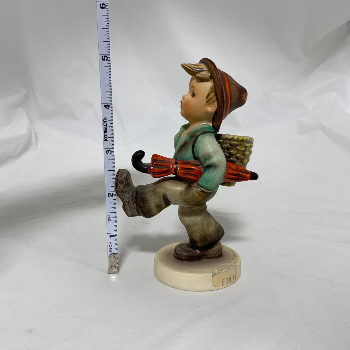He’s off and on his way! Globe Trotter, Hum 79. TMK-3. Please see photos for details and condition. Chip on paint of umbrella, pictured. ::: Shipping is available on this lot. If you require shipping you must let us know at the close of the auction. We will coordinate with you after the item has been won. Shipping fees will include insurance up to or exceeding the value of all items being mailed. If you have any questions regarding this lot please contact the auctioneer either via this website, by direct email or by phone. PICK UP TIMES and other important information can be found in the TERMS and DESCRIPTION of the auction. Please take a look for pertinent information. Thanks!