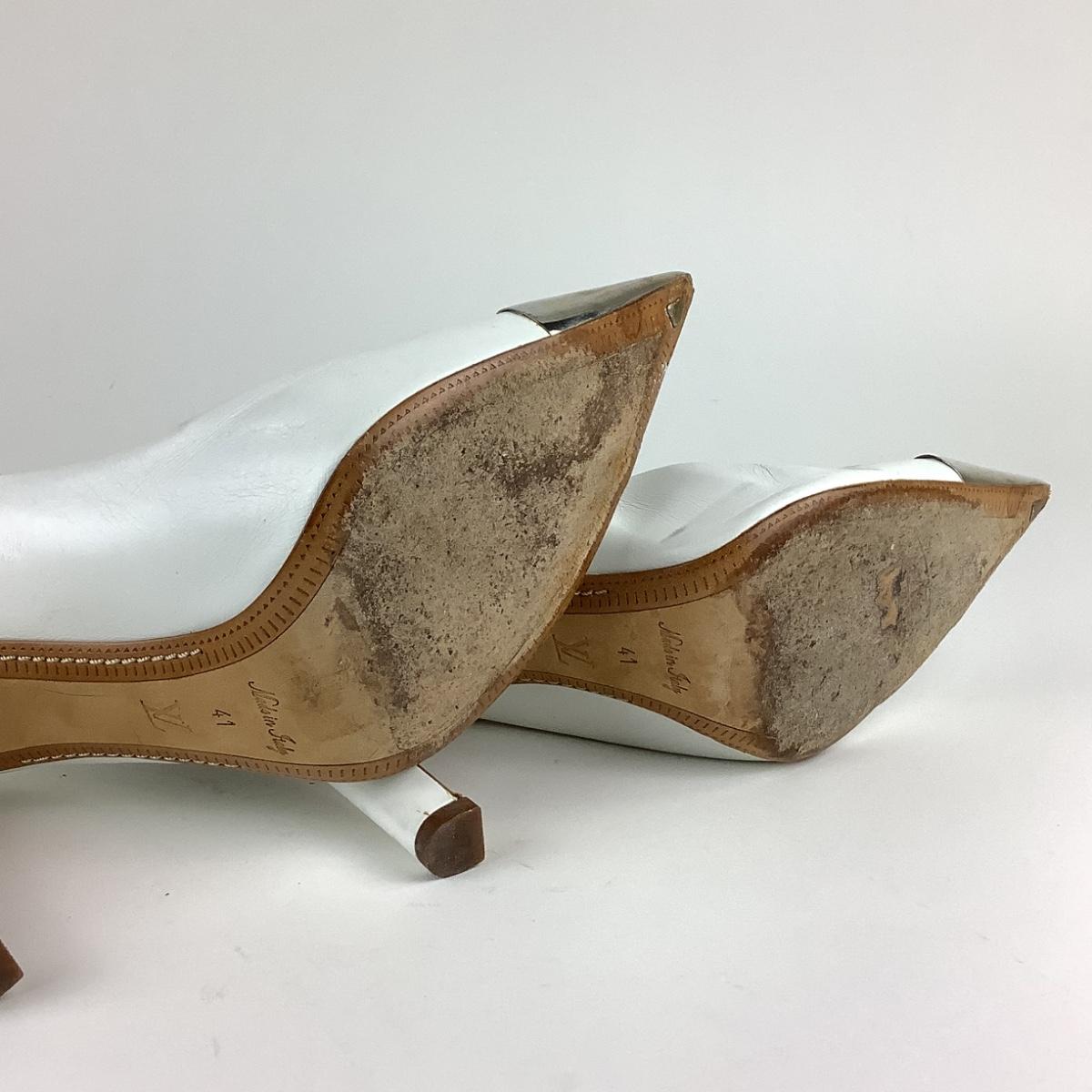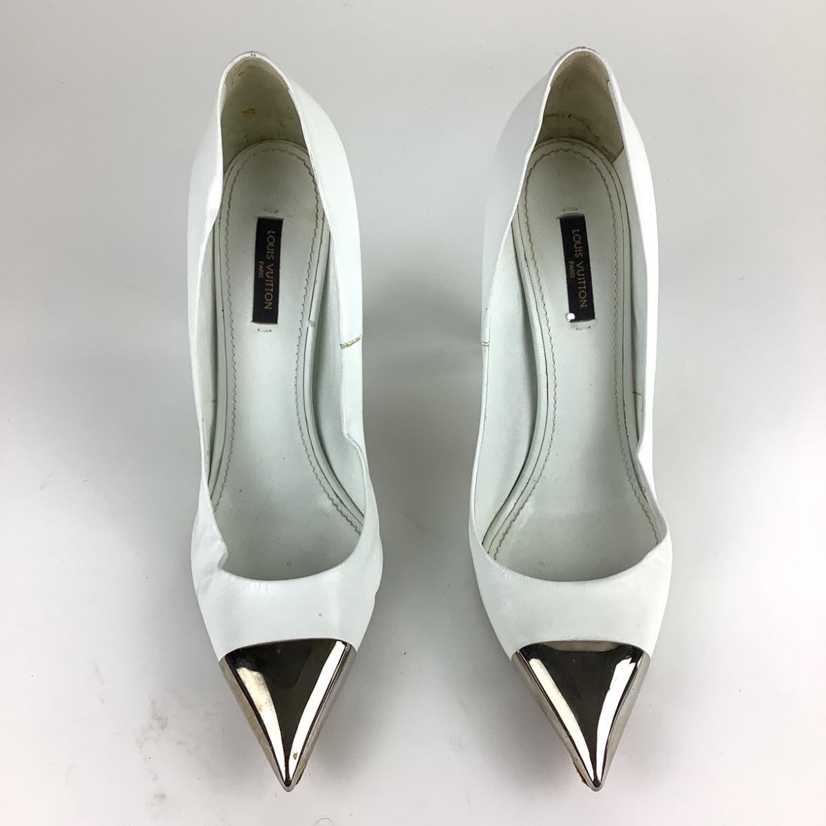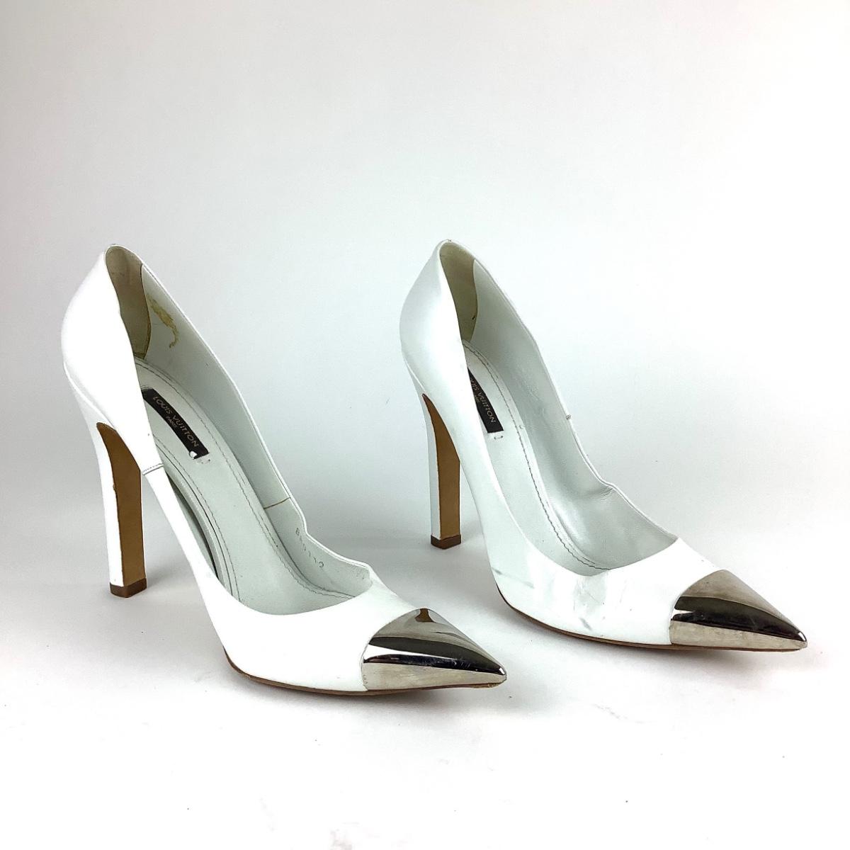 111 LOUIS VUITTON White Leather Urban Twist Pointed Pumps Size 41